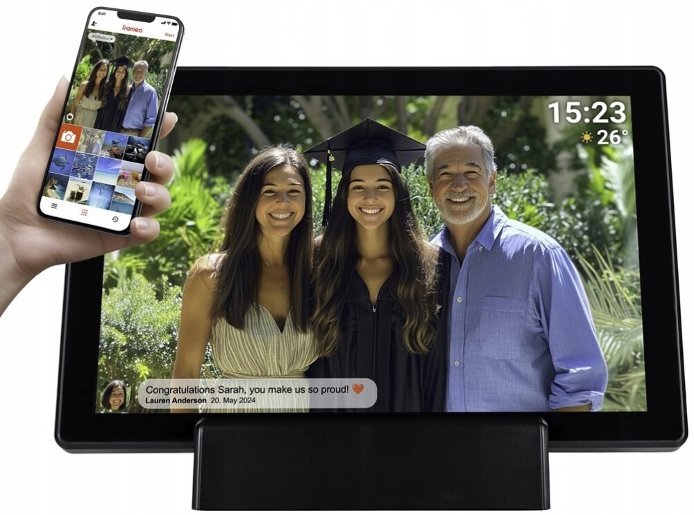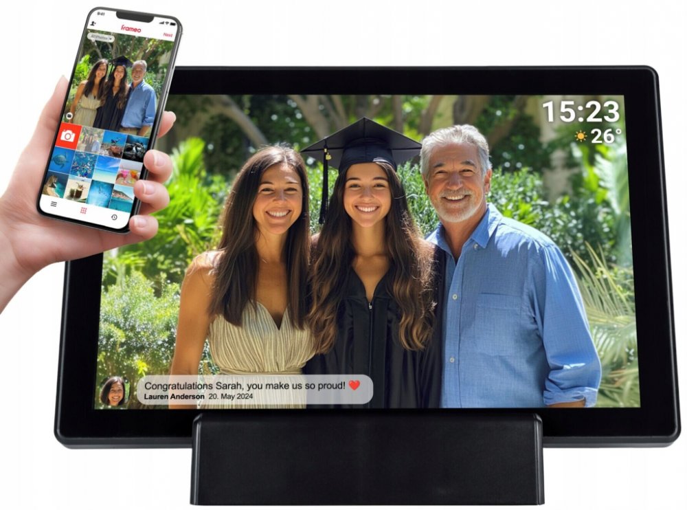 Zažijte nový společenský způsob sdílení vašich vzácných momentů s digitálním Wi-Fi fotorámem Denver PFF-1015B. S jeho 10,1" IPS dotykovou obrazovkou prožijte své vzpomínky v ostrých a živých barvách. Vestavěná funkce Wi-Fi a software Frameo usnadňují odesílání a přijímání fotografií přímo na rámu, díky čemuž budete ve spojení s přáteli a rodinou bez ohledu na vzdálenost. Nikdy se nestarejte o nedostatek místa díky 16 GB internímu úložišti a slotu na kartu MicroSD, díky čemuž budete mít dostatek místa pro všechny své oblíbené obrázky s bezplatnou aplikací pro Android a iOS. Správa vaší sbírky fotografií nebyla nikdy pohodlnější. Elegantní design Denver PFF-1015B se perfektně hodí do každé místnosti a nabízí moderní nádech vaší domácí výzdobě a zároveň zobrazuje vaše vzácné fotografie.