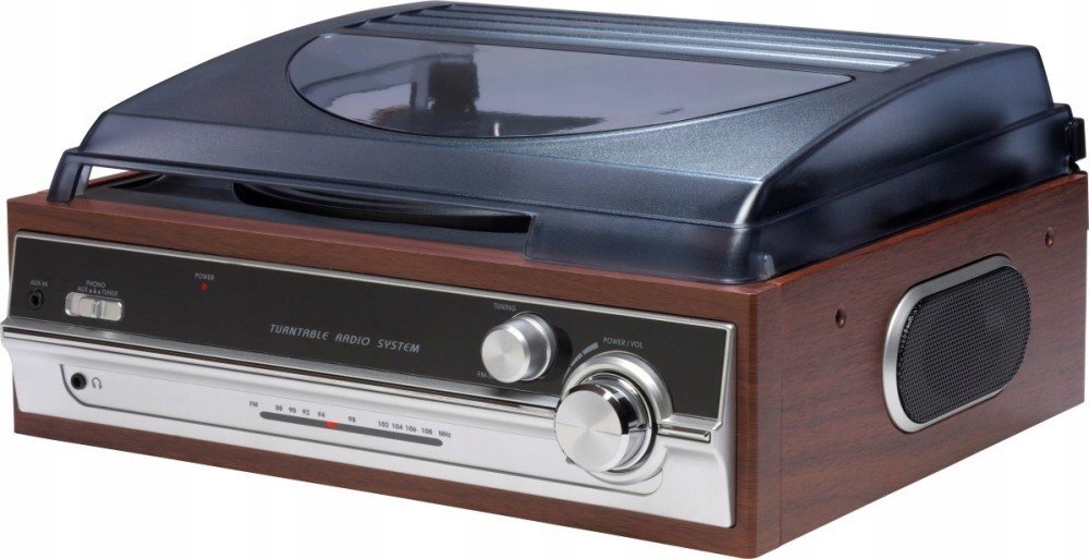 Toto všestranné zařízení obsahuje klasický gramofon (33 1/3, 45, 78 ot./min.), port Aux-In (pro přehrávání hudby) z externích zařízení) a stereo FM rádio s analogovým laděním, abyste si mohli vychutnat svou oblíbenou rozhlasovou stanici.