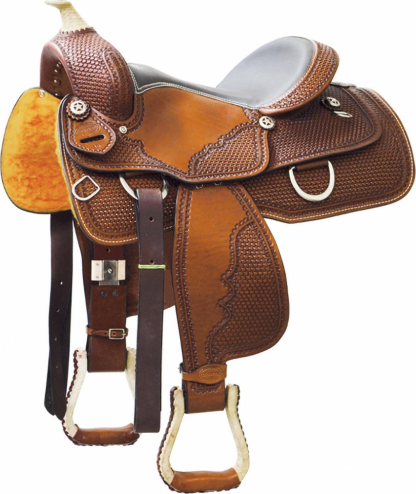 Vysoce kvalitní westernové sedlo vyrobené z měkké kůže. Opatřeno kostrou Ralide, která je zárukou špičkové kvality a dlouhé životnosti. Kostra vyrobena z polyethylenu. Díky anatomickému tvaru rozkládá rovnoměrně tlak na záda a přitom ponechává kohoutek zcela volný. Zajišťuje maximální pohodlí a plnou svobodu pohybu. Na spodní straně podloženo měkkým beránkem. Opatřeno kováním z nerezové oceli. Zd...