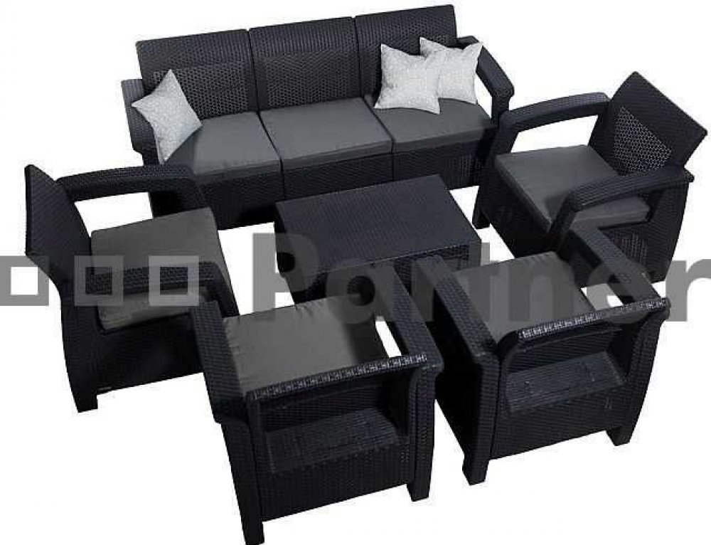Praktická antracitová sedací sestava z umělého ratanu