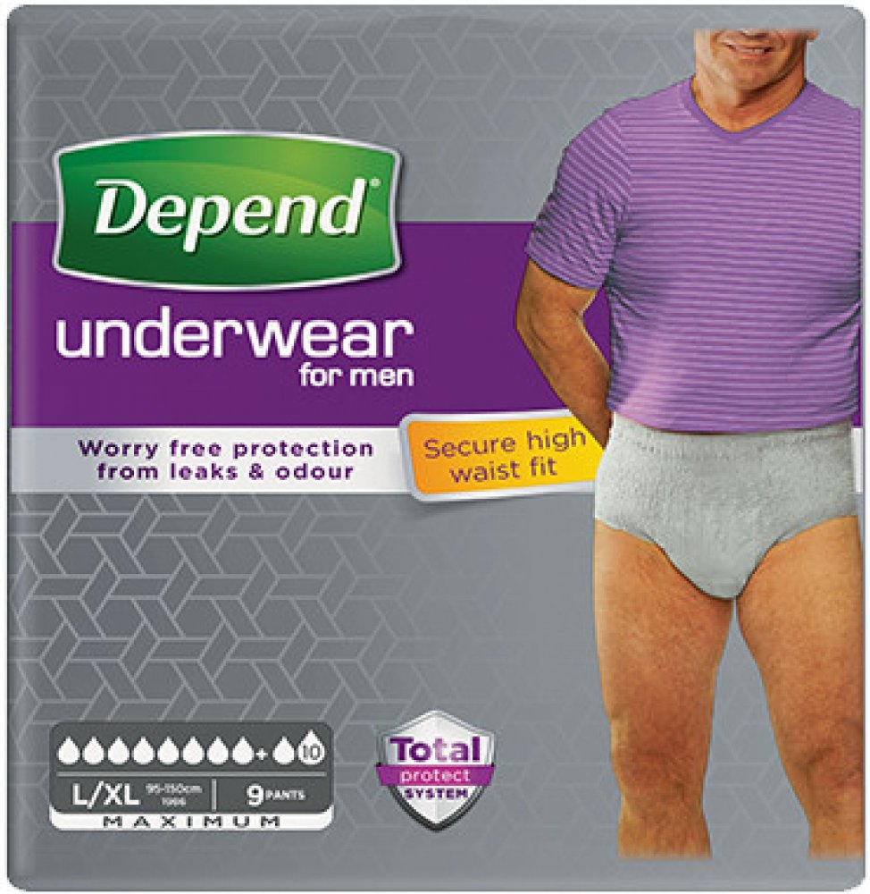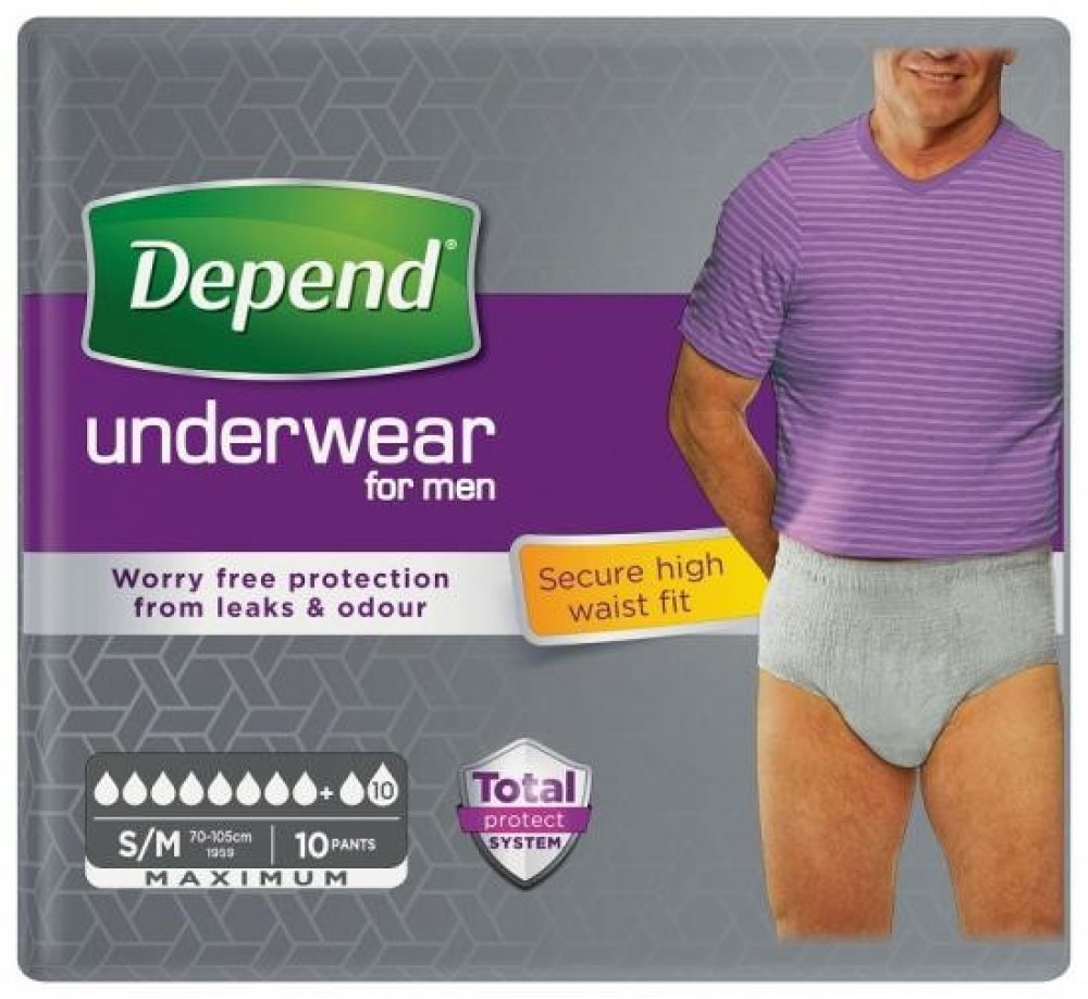 Vysoce absorpční natahovací kalhotky Depend Maximum s vyšším pasem pro muže.