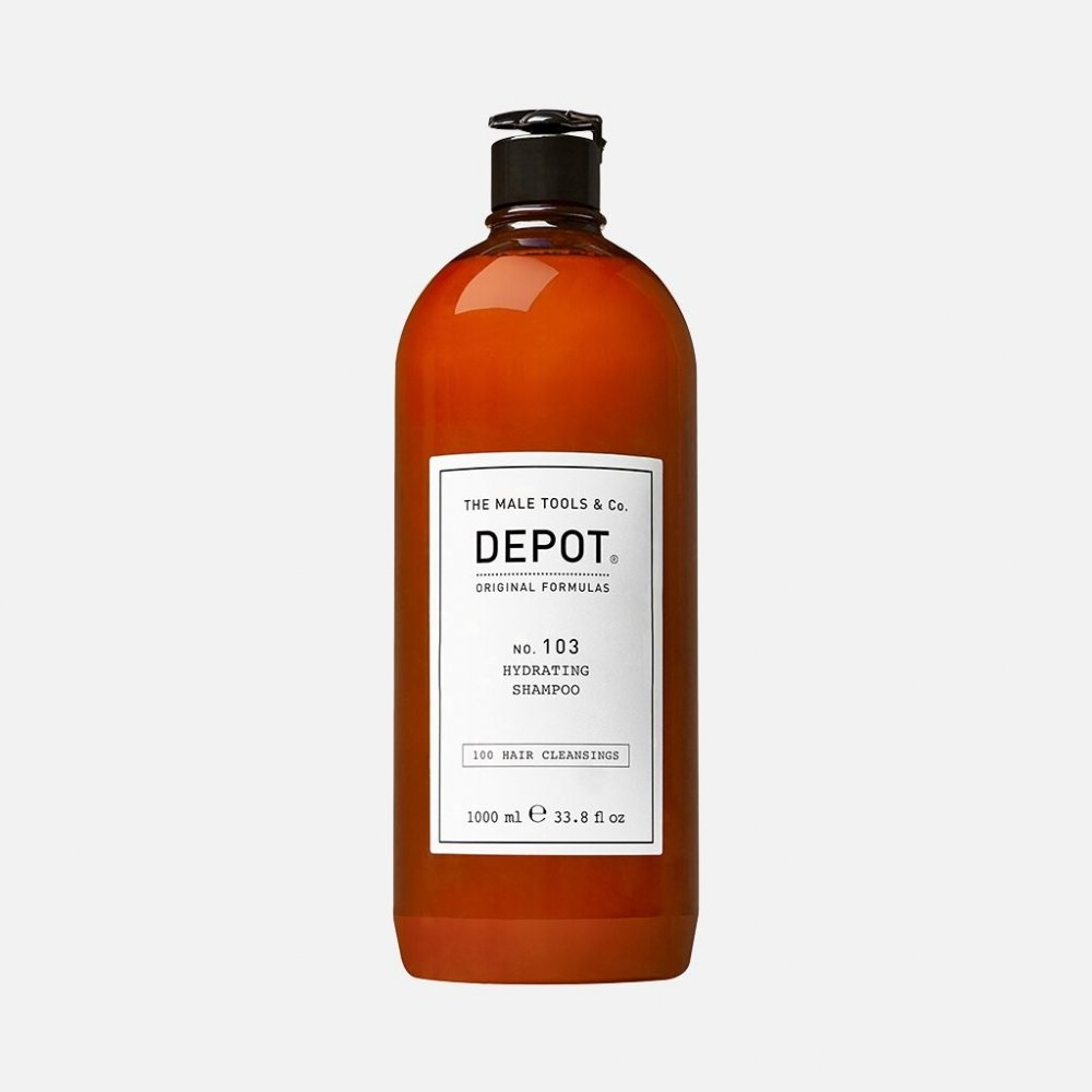 Depot - Hydratační šampon č. 103 1000 ml Vlasová kosmetika v naší nabídce nese jména těch nejslavnějších kadeřnických značek. Šampony značky Depot z kolekce byly vytvořeny pro suché vlasy speciálně pro muže. Tento kadeřnický zázrak má objem 1000 ml.