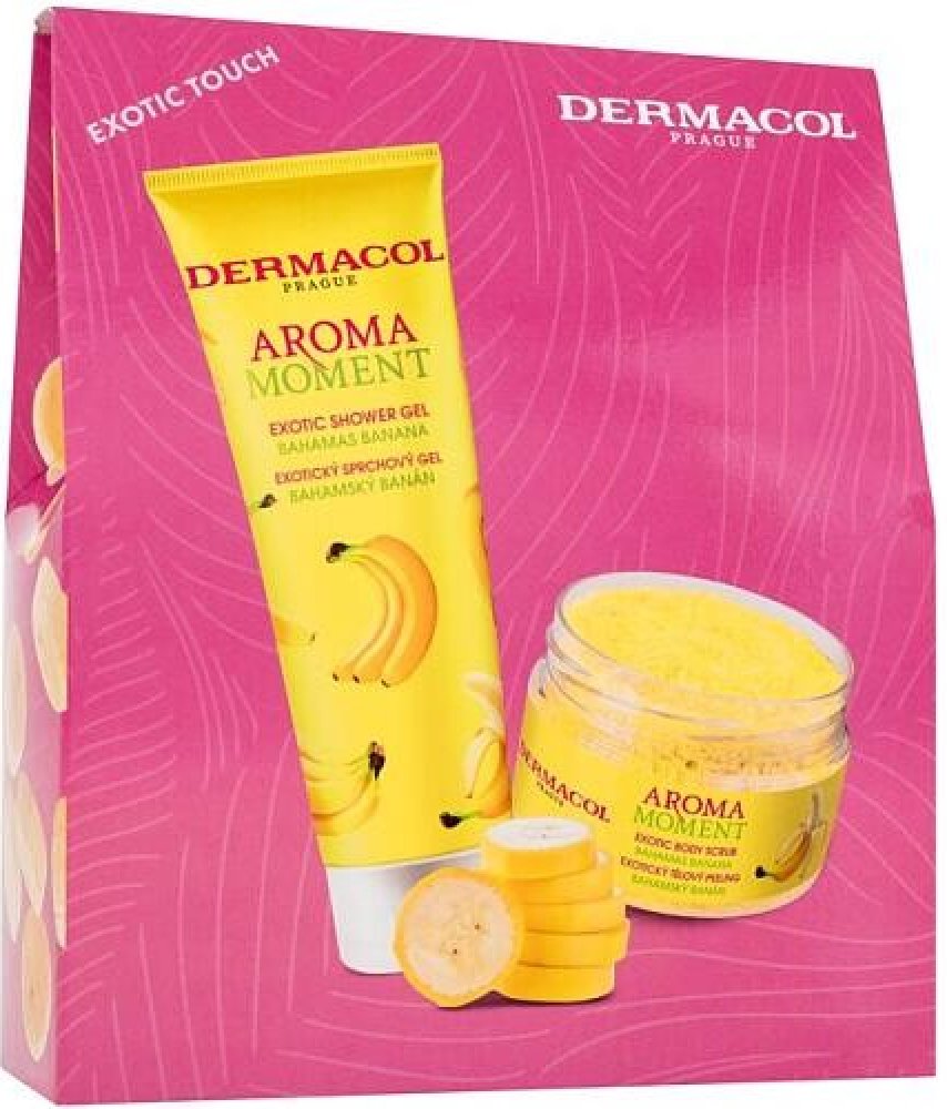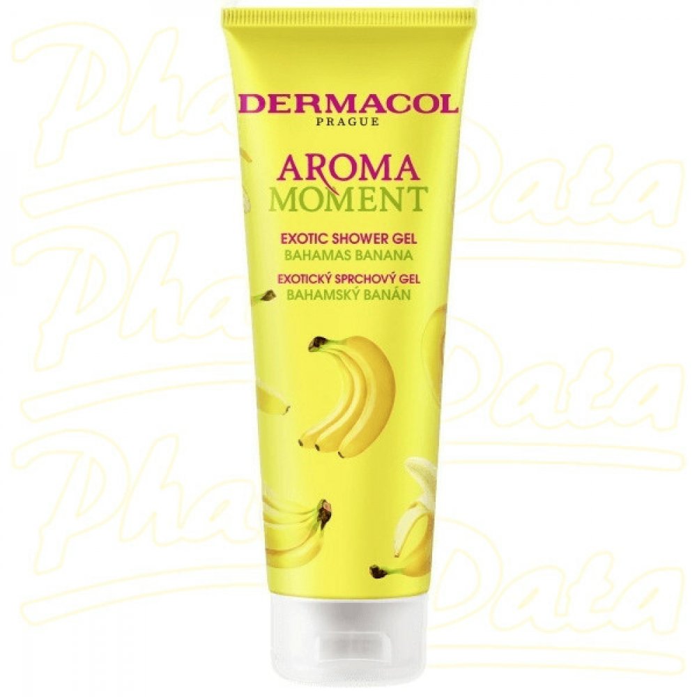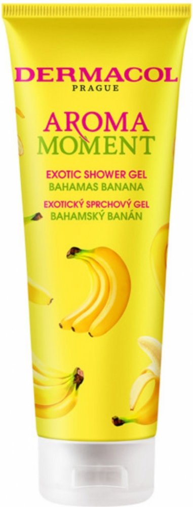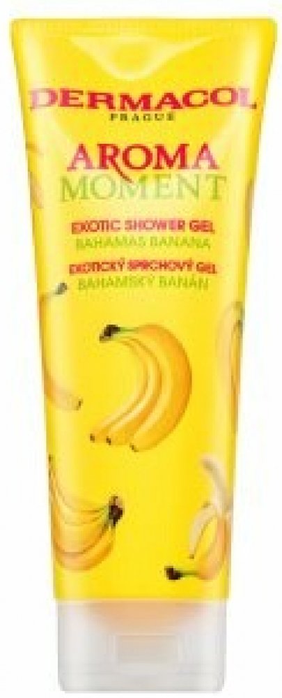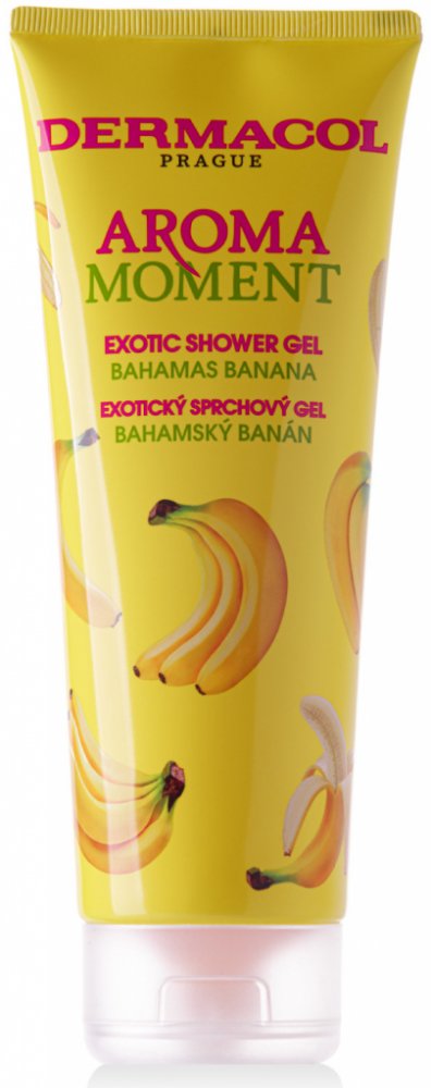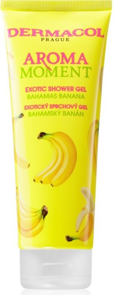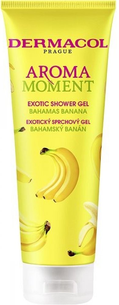 Dermacol Aroma Moment sg bahamský banán 250 ml Sprchový gel bahamský banán vás okouzlí svoji nasládlou vůní. Tropická exploze zralých a sladkých banánů vás v okamžiku přenese do exotického ráje a vytvoří dokonalou relaxaci všech vašich smyslů. Jemný sprchový gel efektivně čistí pokožku těla, vyživuje ji a hydratuje. Je vhodný ke každodennímu použití.