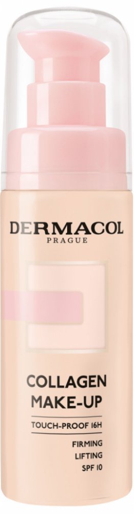 **Dermacol Collagen Make-up SPF10** je kolagenový make-up, který poskytuje dokonalé krytí, příjemně rozjasňuje a vytváří perfektně sjednocený tón pleti. Jeho speciální složení je navrženo tak, aby po nanesení přilnulo ke keratinové vrstvě pokožky. Další specialitou tohoto make-upu je schopnost zadržovat vodu, díky tomu bude vaše pleť hydratovaná, hebká a vyhlazená.