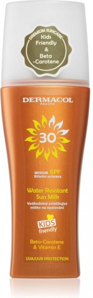 Voděodolné mléko s ochranným faktorem OF 30 v rozprašovači chrání pokožku před předčasným stárnutím. Mléko je vhodné i pro jemnou dětskou pokožku od 3 let. Lehká, nemastná textura se jednoduše roztírá, nelepí a zabraňuje poškození pokožky vlivem UV záření. Díky praktickému rozprašovači nanesete vždy rovnoměrnou vrstvu.
