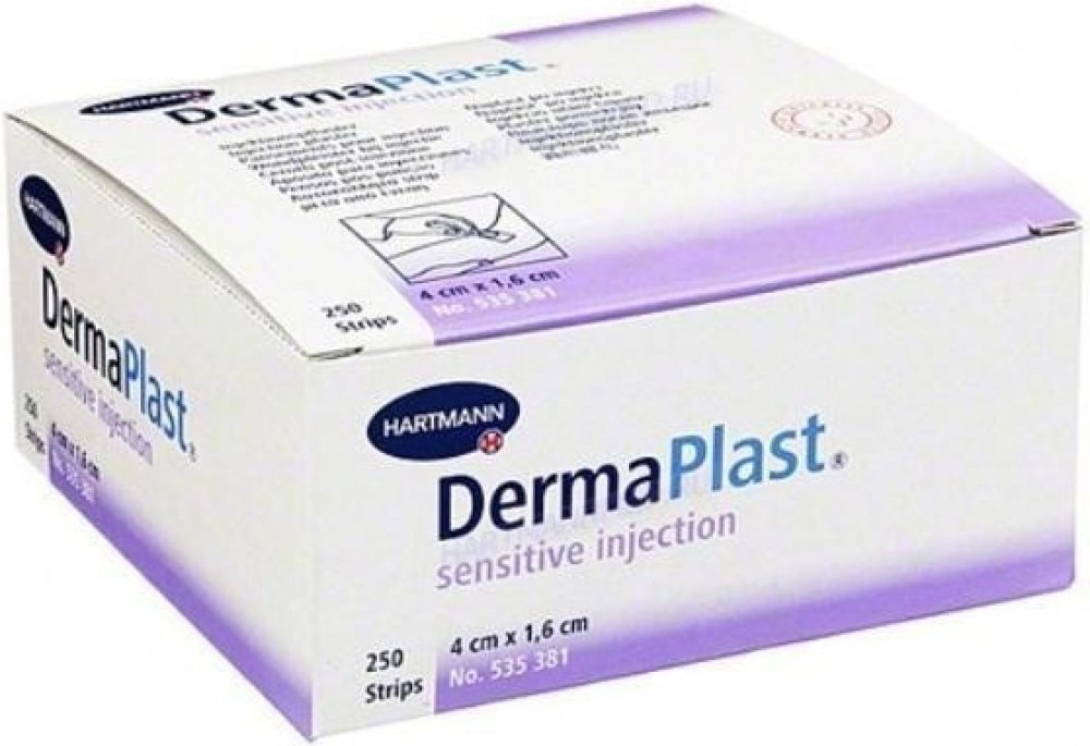 Náplast DermaPlast SOFT Injection je náplast vhodná nejen pro lékařskou praxi, doma nebo do výbavy lékárničky například v práci. Náplast je vyrobena z měkkého netkaného textilu. Je prodyšná a obsahuje syntetické kaučukové lepidlo nanesené v proužcích, což už umožňuje použití i těm s citlivou pokožkou. Náplast je dostupná v několika provedeních nedělené i dělené v různých tvarech. Dělená náplast De...