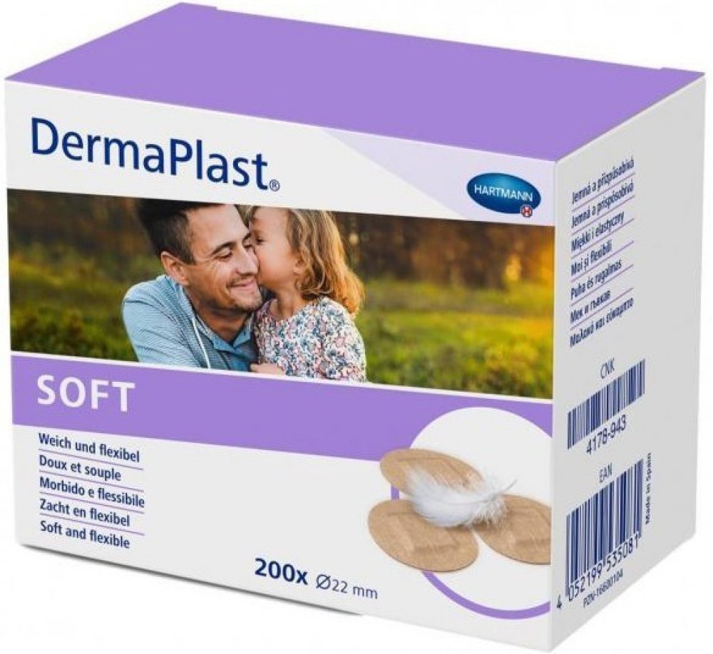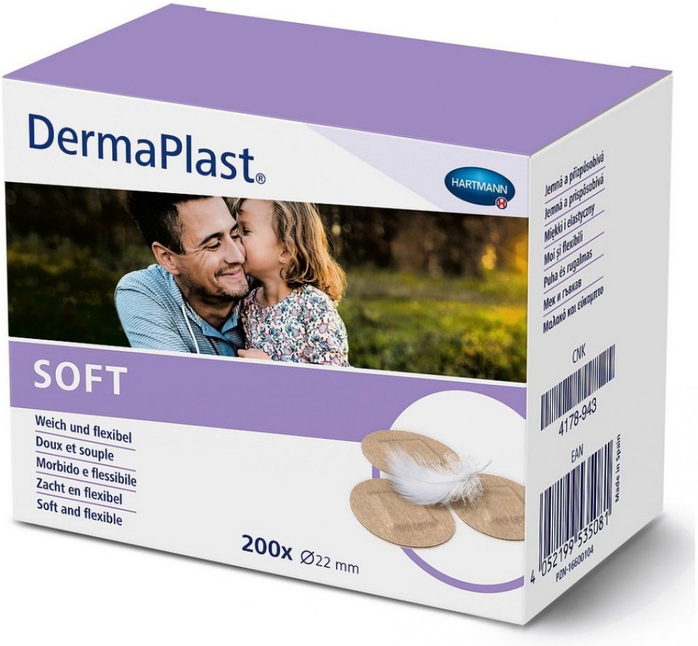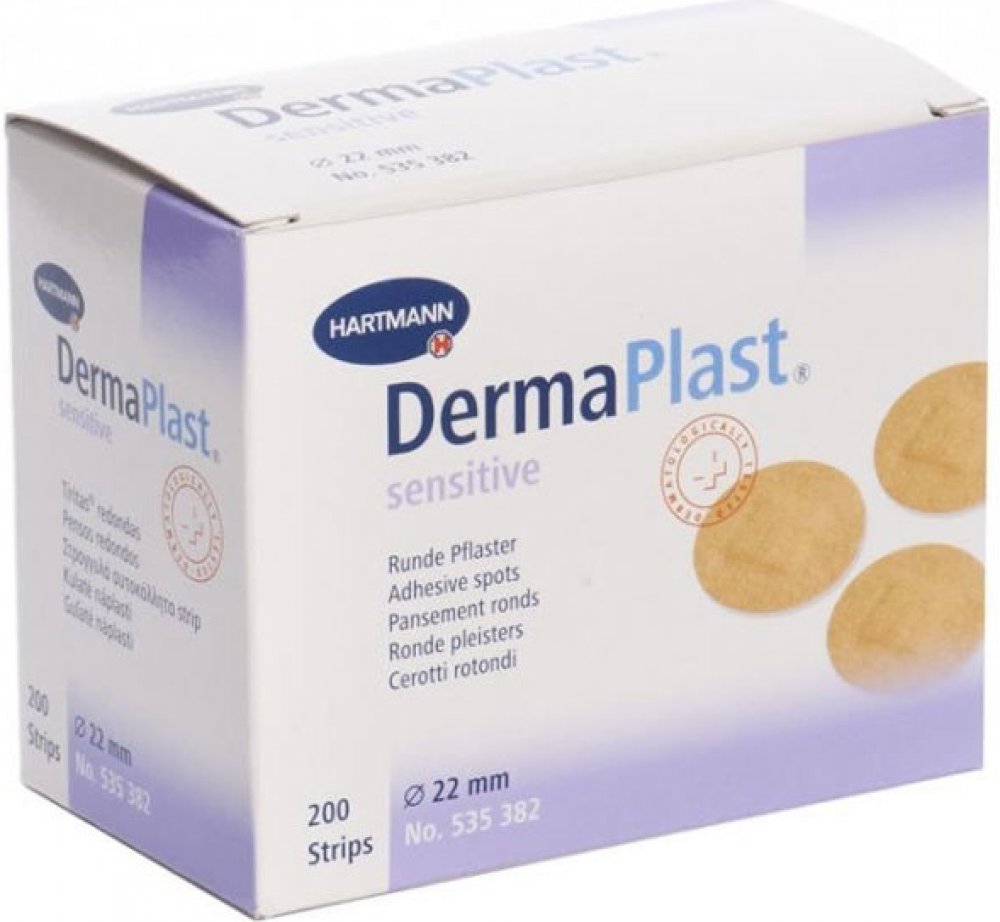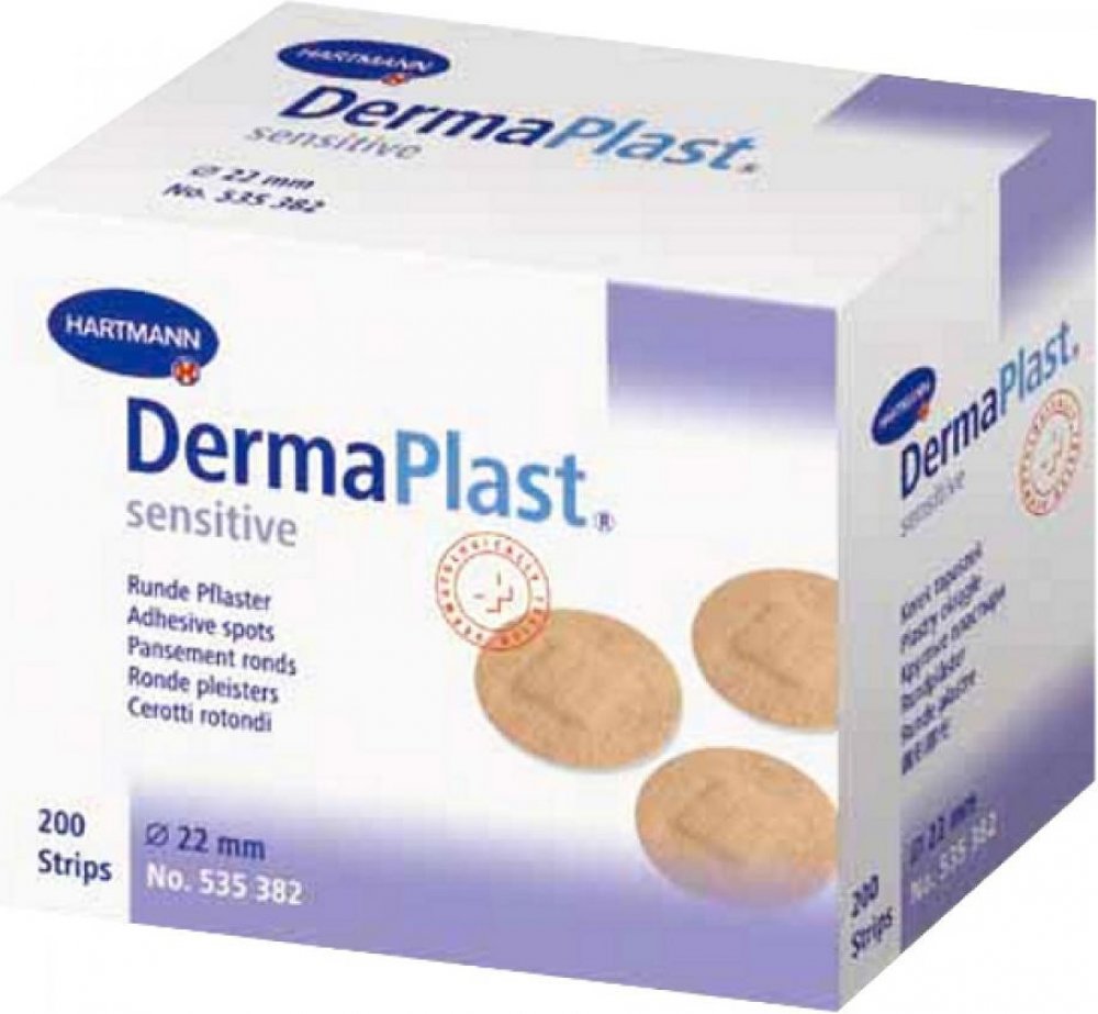 DermaPlast na krytí ran Hartmann pro domácí péči kulaté/tečka pro dospělé hromadné balení nesterilní 200 ks středně pružné 2.2 cm