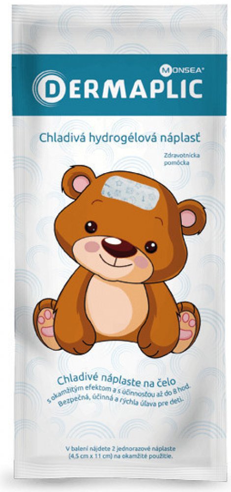 DERMAPLIC chladivá hydrogelová náplast je zdravotnický prostředek. Chladivá náplast byla navržena s cílem poskytnout dítěti okamžitou úlevu při očkování, zvýšené tělesné teplotě a bolesti zubů. Dermaplic náplasti jsou bezpečné a určené k okamžitému použití. Má díky nízkému pH dobrou přilnavost k pokožce a pokožku nedráždí. Z místa aplikace se dá jednoduše odstranit beze zbytku. Náplast může být použita spolu s léky na snížení horečky.Má chladivý efekt, který působí až 8 hodin.Je to jednodušší a pohodlnější alternativa vlhkých obkladů. Náplasti nemusíte dávat do ledničky. Stačí vyjmout z obalu a přilepit přímo na kůži.Balení obsahuje 2 náplasti: 4,5 cm x 11 cm.