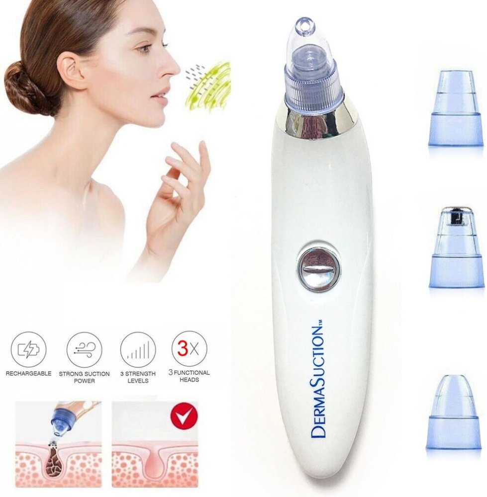 Čistící sada DermaSuction pro dokonale vyčištěnou pleť za pár okamžiků. Skvělý pomocník, kterého znáte z televizní reklamy. DermaSuction se postará, aby byla vaše pokožka čistá a zářivá. Pleť je zbavena všech nečistot, zbytků make-upu, vyrážek, černých teček i odumřelých částí kůže. Součástí balení jsou čtyři různé nástavce na každou část těla, včetně Sonic násady s funkcí peelingu. Přístroj je možné nastavit na dvě intenzity sací síly. Díky bezkabelovému provedení můžete DermaSuction používat nejen doma, ale také kdekoliv jinde. Zařízení se snadno ovládá i čistí.