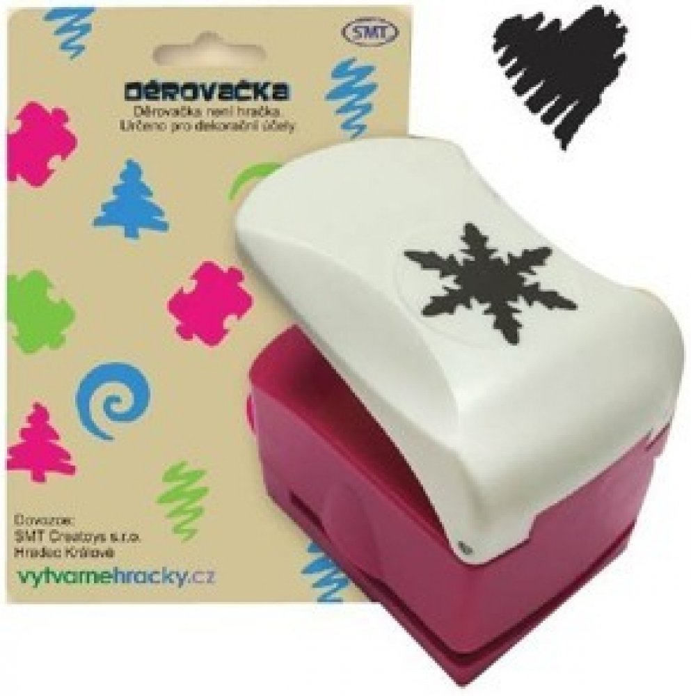 Děrovačka pro výtvarnou tvorbu. Velikost výseku 32 mm. Postup: 1. pracujte s děrovačkou na pevné a rovné ploše. 2. vložte papír vhodné tloušťky - 160-240 g/m2 a zatlačte na páku statickým tlakem. Nikdy ne úderem na páku. 3. po proděravění opatrně vytáhněte zbylý papír. 4. POUŽÍVEJTE POUZE NA PAPÍR. Děrovačky nikdy nepoužívejte na materiály potažené lepící vrstvou (například na samolepicí štít...