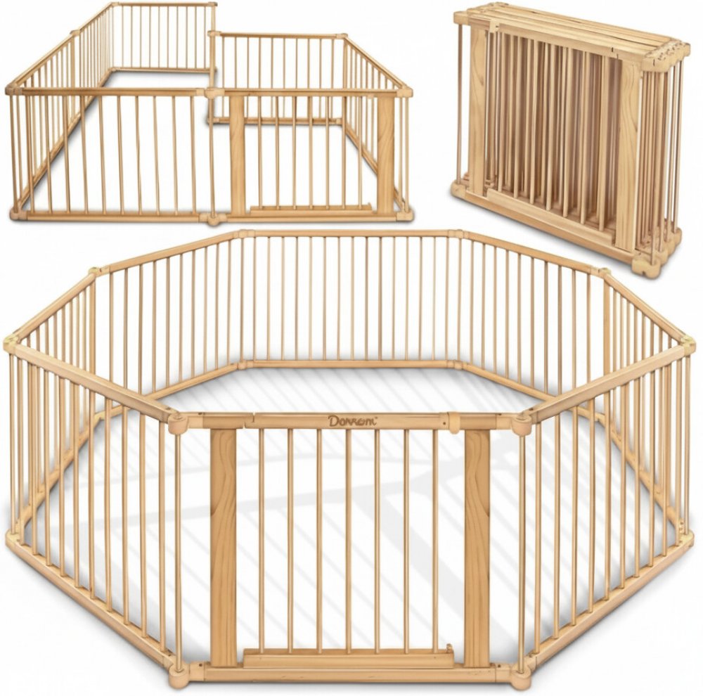 Derrson Dětská dřevěná ohrádka XXL 7,2 m Přírodní 8 ks panelů