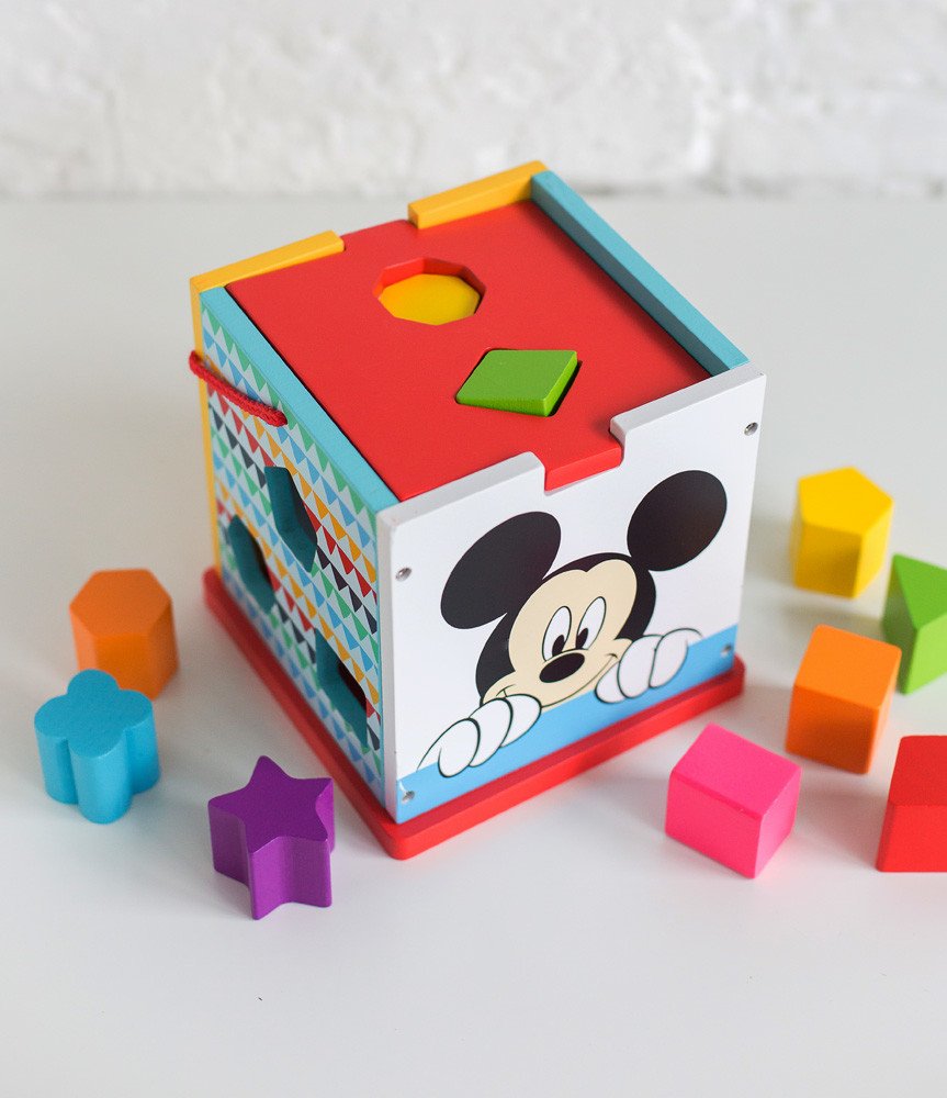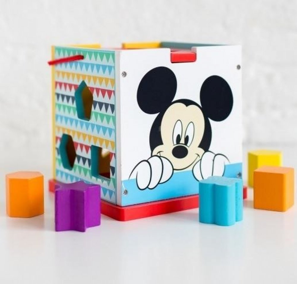 Dřevěná edukační, vkládací kostka Disney - Mickey Mouse.