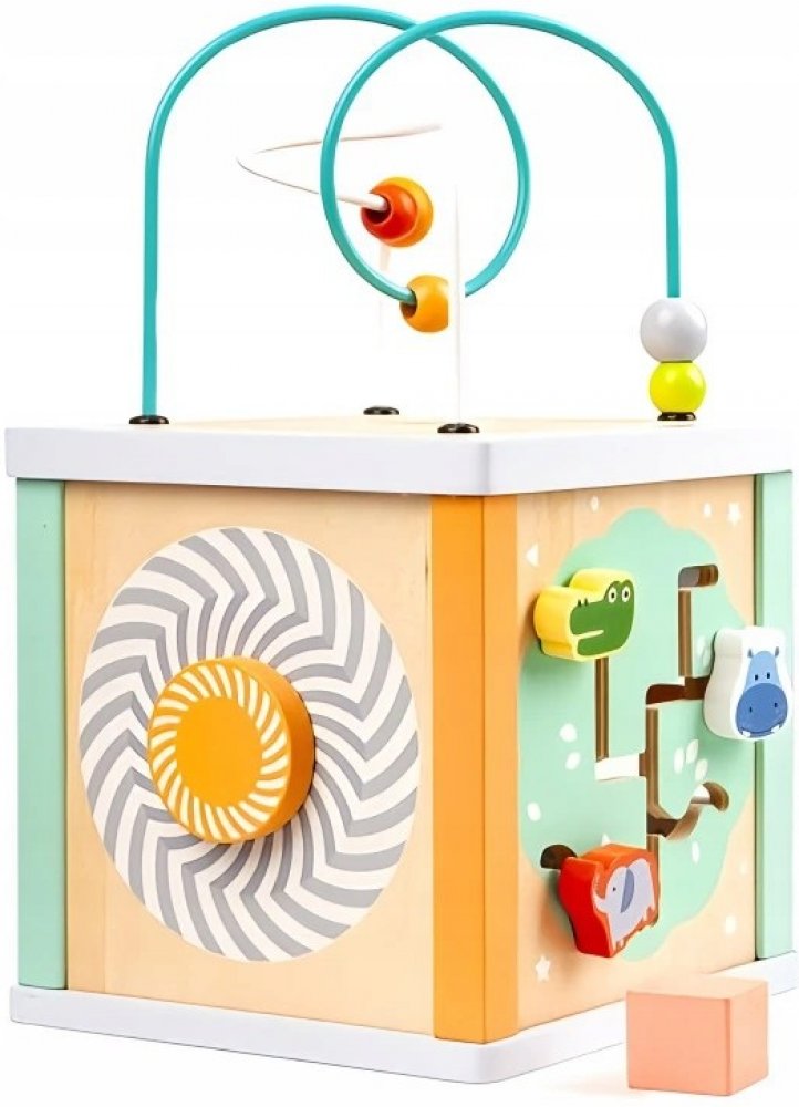 85+ zákazníků již nakoupilo 100% zákazníků doporučujeVzdělávací kostka ze dřeva má několik stran a každá strana má jinou funkci. Kostka má řadu pohyblivých prvků a knoflíků, které rozvíjejí manuální schopnosti dítěte. Kostka má odnímatelný horní kryt na kterém jsou umístěny kovové spirály po nichž posunujete barevné korálky. Dětem tato kostka pomůže se dozvědět o tvarech. Zlepšuje koordinaci očí a rukou. Díky otevíracímu víku můžete ukládat malé hračky do kostky - vše budete mít na jednom místě a po ruce, kdykoli připravené ke hře. Specifikace: Rozměr: 20x20x36cm (včetně nasazeného labyrintu) Od 18 měsíců Cetifikáty: CE, EN71, SGS Vzdělávací kostka účinně rozvíjí:hmatzrakkoordinacipohyblivost rukou a prstůlogické myšleníHračka Derrson dřevěná motorická kostka pastelová 5v1 splňuje všechny normy EU.Věk: 18m+