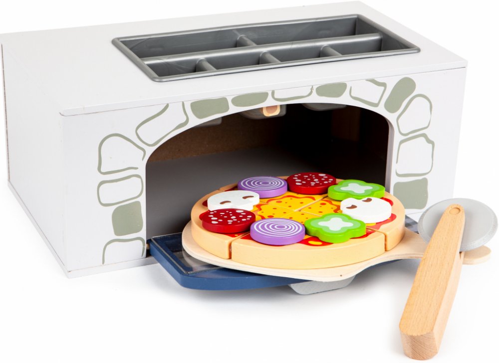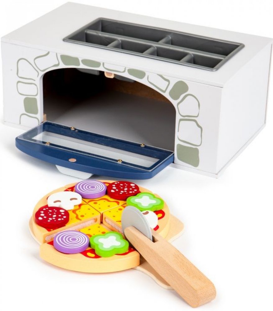 Kamna jsou vyrobena ze dřeva, Má otevírací dvířka a v horní části se snaží příslušenství. Sada obsahuje:8 dřevěných přísad: žampiony, salám, cibuli a salát. Ingredience lze umístit na dřevěnou placku, kterou lze rozříznout na 4 díly. Sada obsahuje také podnos a krájecí nůž.