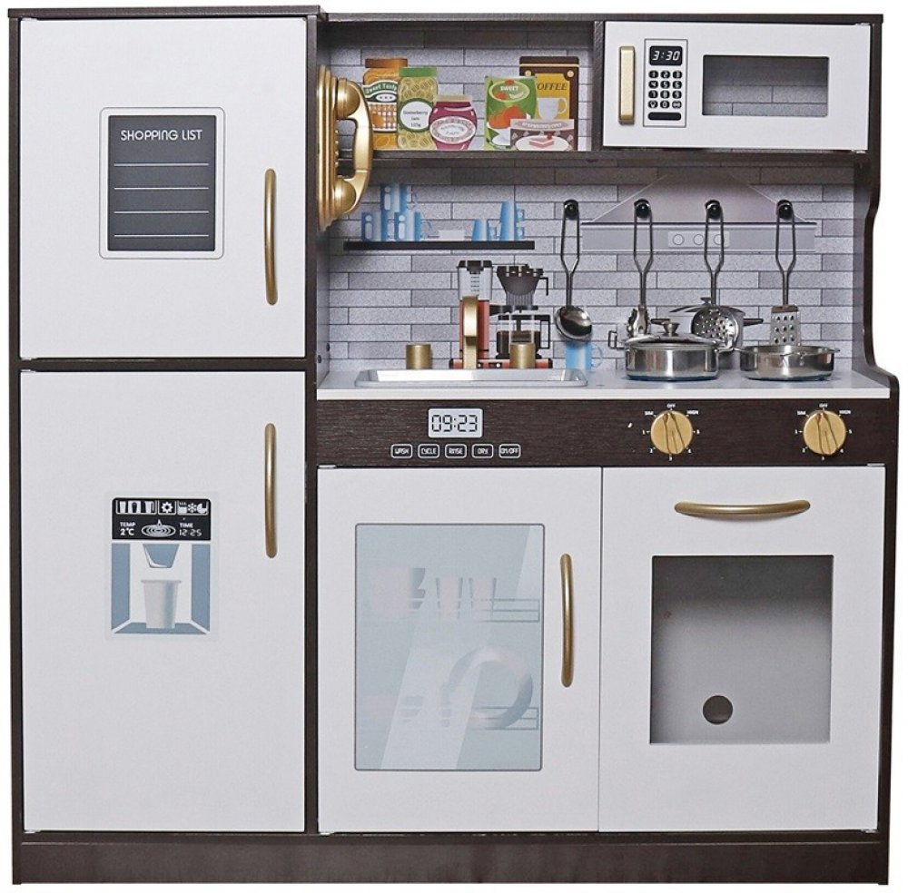 Vyrobeno s důrazem na nejmenší detaily. Kuchyňka má mnoho pohyblivých prvků, jako jsou knoflíky, otevírací skříňky, lednice, trouba. Ideální pro malého kuchaře. Má také osvětlení a hořáky, které imitují oheň.