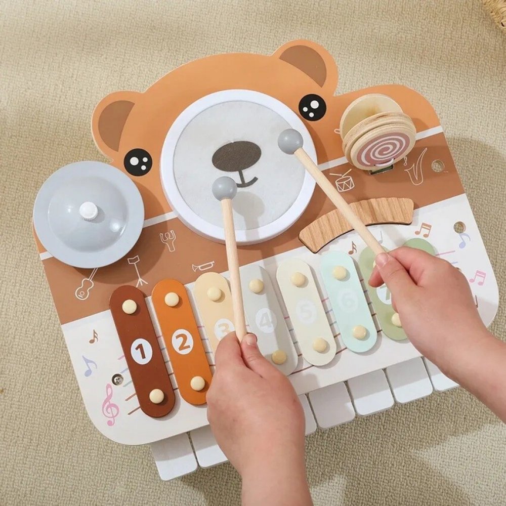 Derrson Multifunkční Xylofon bicí a piáno Medvěd 6v1