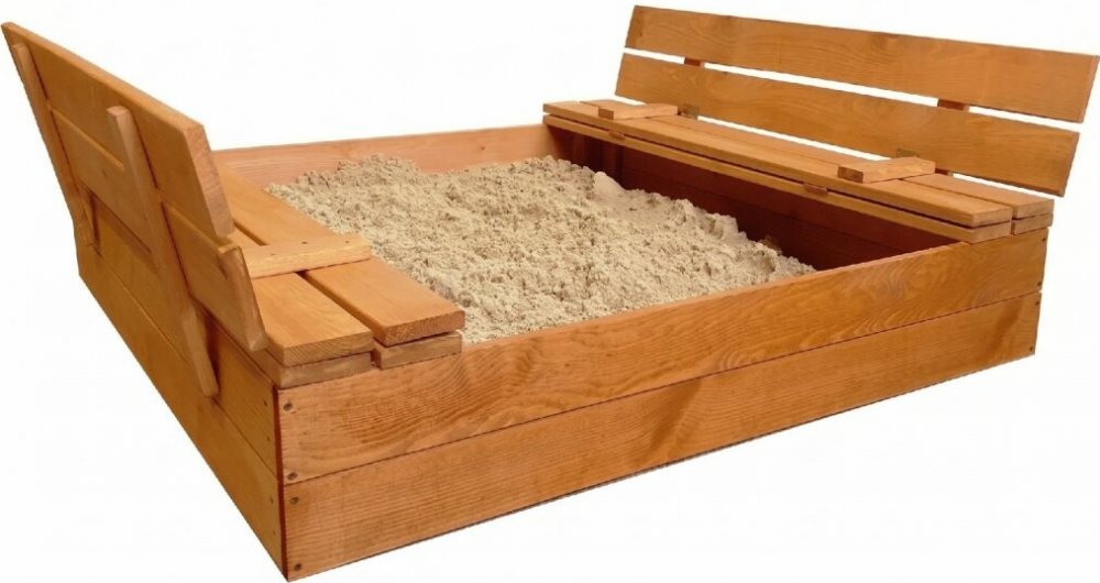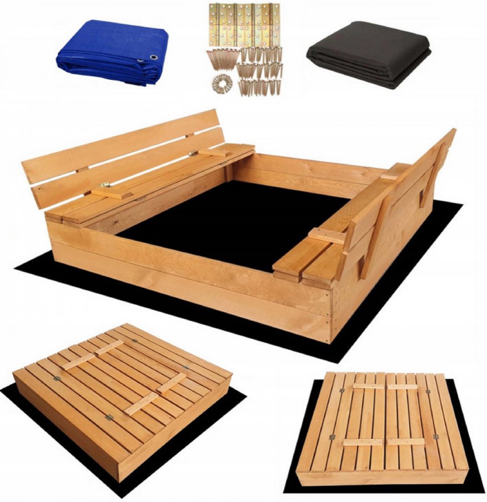 Kvalitní dřevěné dětské pískoviště v rozměru 120 × 120 cm, s vestavěným krytem, který se po otevření pískoviště promění v pohodlné lavičky, a s bohatým příslušenstvím, je ideální místem pro hru na zahradě.