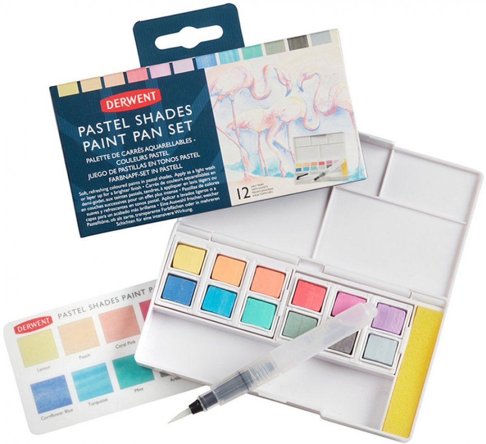 V květnu 2021 vyšla firma Derwent na trh s akvarelovou novinkou Pastel shades, která doplňuje již dostupné sady akvarelek v pánvičkách (metalické, inktense, graphitint).