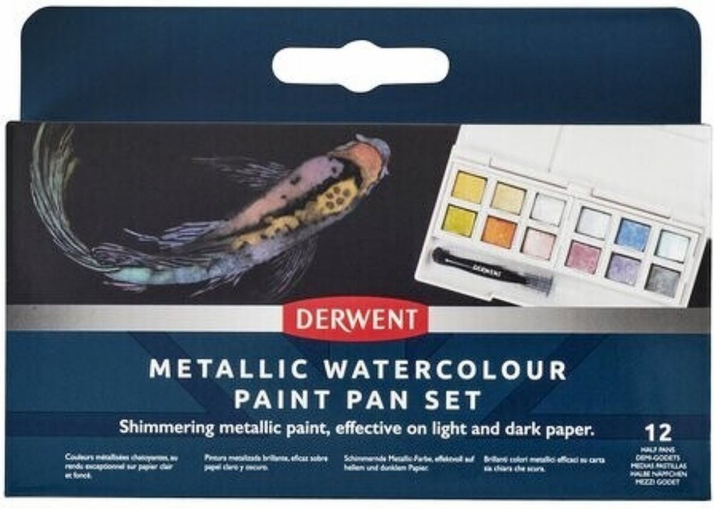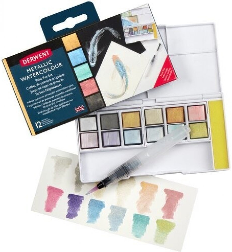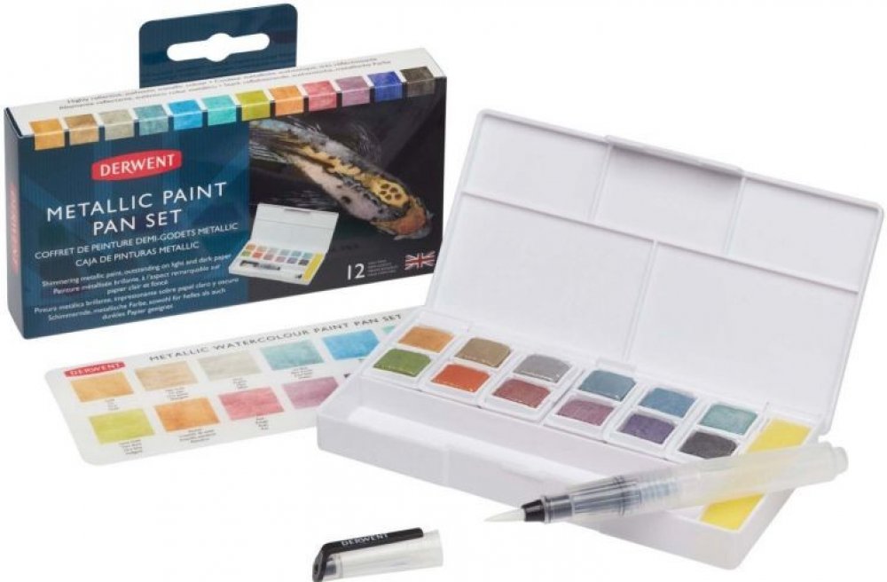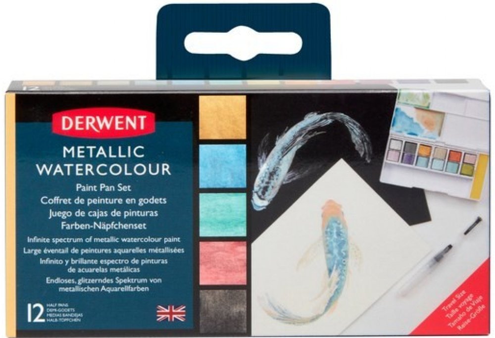 Derwent, 2305657, Metallic, metalické akvarelové barvy v pánvičkách, 12 ks
