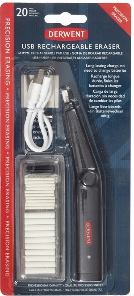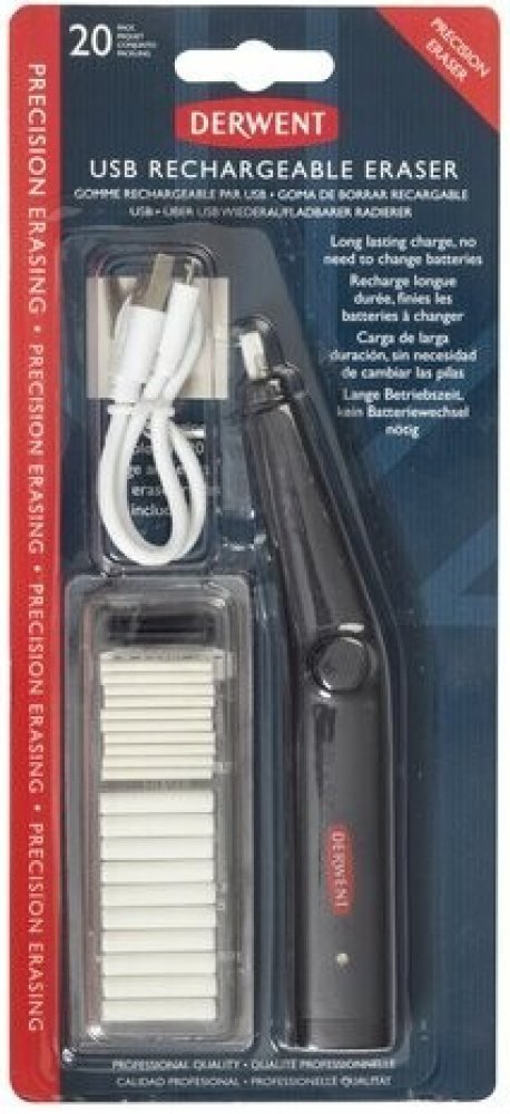 Dobíjecí USB guma Derwent je vybavena vestavěnou 500mAh lithium-iontovou baterií, která se dobíjí přes USB, což eliminuje potřebu výměny baterií.