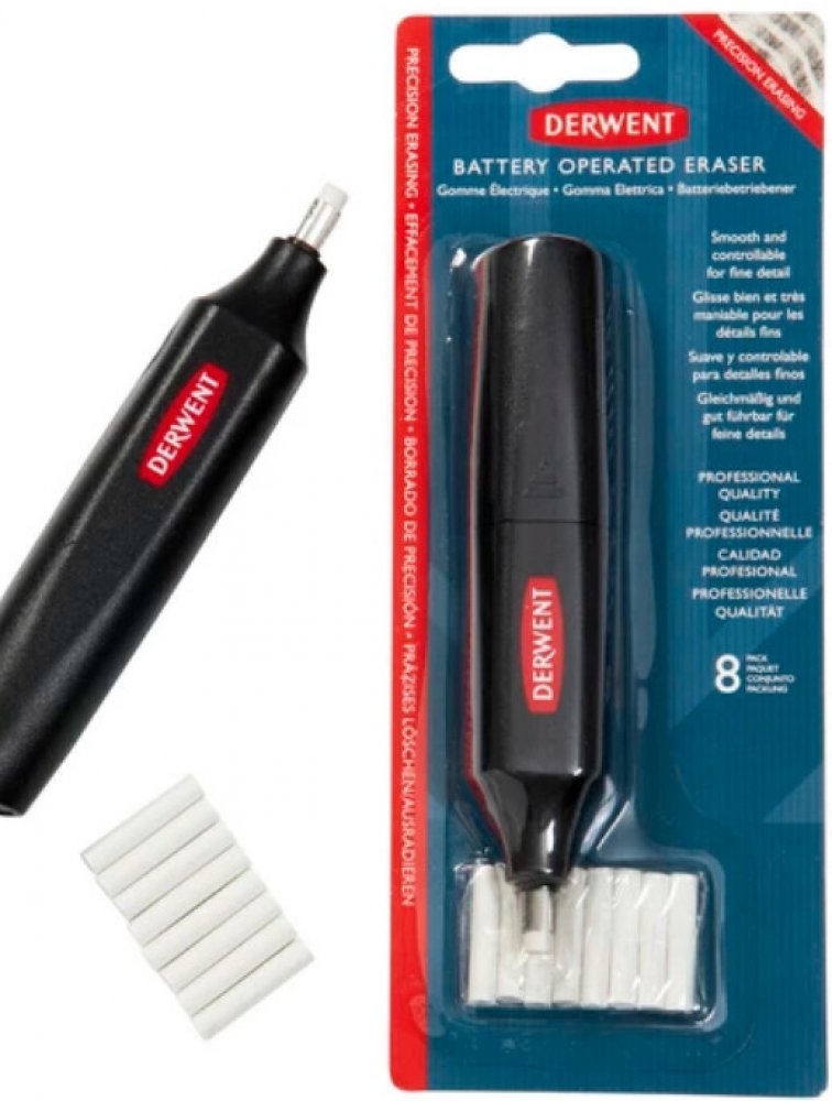 Derwent mazací pero na baterie, umožňuje přesné a rychlé mazání.