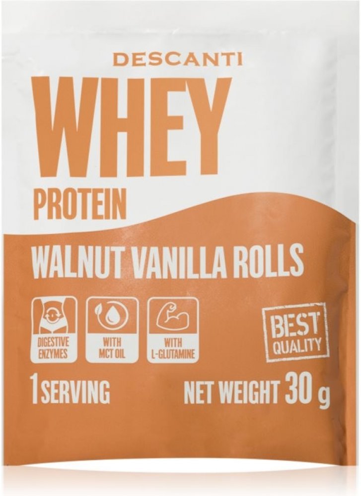 Proteinový prášek se sladidly. Protein přispívá k růstu a udržení svalové hmoty a udržování normálních kostí. Složení: Instantní syrovátkový proteinový koncentrát, Emulgátor (Sójový lecitin), Sušené odstředěné mléko, Sušená syrovátka, L-Glutamin, Inulin (z čekanky), Ochucovadla, Aminokyseliny s rozvětveným řetězcem (L-Leucín, L-Isoleucín a L-Valín), Emulgátor (sójový lecitin, sodná sůl karboxymetylcelulózy), Rostlinné oleje [Rostlinné triglyceridy se středním řetězcem (MCT) z kokosového oleje], Sladidla (Sukralóza, Acesulfam-K), Sůl, Prostředek proti pěnění (Oxid křemičitý) Papain (z papaje melounové 6000 USP/mg), Vanilkový krystal, Laktázový enzym (z Aspergilu černého. 65000 UG), Barvivo (Tartrazin**). **Tartrazin: může mít negativní vliv na aktivitu a pozornost u dětí. Velikost porce: 1 odměrka (30 g) Návod k použití: Smíchejte 1 odměrku (30 g) s 250 ml vody. Užívejte 1 porci denně: v tréninkové dny konzumujte 1 porci po 30 minutách od tréninku. V netréninkový den užívejte 1 porci po probuzení. Výživové údaje 100 g 30 g *RP% (v 30 g) Energie 1 584 kJ /374 kcal 475 kJ / 112 kcal 6 % Tuky 3, 6 g 1, 08 g 2 % - z toho nasycené mastné kyseliny 2, 1 g 0, 63 g 3 % Sacharidy 9, 7 g 2, 91 g 1 % - z toho cukry 5, 3 g 1, 59 g 2 % Vláknina 1, 4 g 0, 42 g - Bílkoviny 75 g 23 g 46 % Sůl 0, 90 g 0, 27 g 4 % Bromelain (1 200 GDU/g) 0, 1 g 30 mg - Papain (6 000 USP/mg) 0, 05 g 15 mg - Lactase enzyme (65 000UG) 0, 02 g 6 mg - * RP %: Referenční příjem průměrné dospělé osoby (8 400 kJ / 2 000 kcal). Upozornění: Potravinové doplňky nenahrazují vyváženou stravu a zdravý životní styl. Nepřekračujte hodnotu doporučeného dávkování. Uchovávejte mimo dosah dětí. Informace o alergenech: Alergeny jsou vyznačeny hrubým písmem. Vyrobeno v zařízení, které zpracovává sóju, vejce a ořechy. Podmínky skladování: Uchovávejte správně uzavřené mezi 5 až 30°C. Uchovávejte mimo dosah přímého ohně, vlhkosti a slunečního světla. Po otevření spotřebujte nejdéle do 6 měsíců.