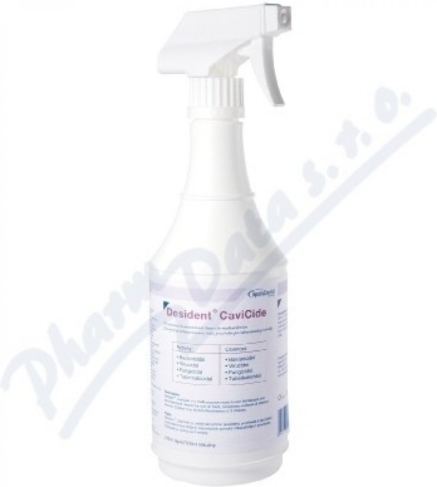 Účinný univerzální prostředek určený k dezinfekci. Desident spray CaviCide MR 700ml z kategorie Desinfekce Ostatní . Popis produktu Účinný univerzální prostředek určený k dezinfekci a dekontaminaci tvrdých, neporézních ploch a předmětů postřikem s rychlým a dlouhodobým účinkem. Přípravek je účinný za 3 minuty. Má vynikající materiálovou snášenlivost. Určen k dezinfekci lékařských přístrojů, nástrojů, pomůcek apod. Neobsahuje formaldehyd. Spektrum účinnosti: baktericidní, virucidní, fungicidní, tuberkulocidní.