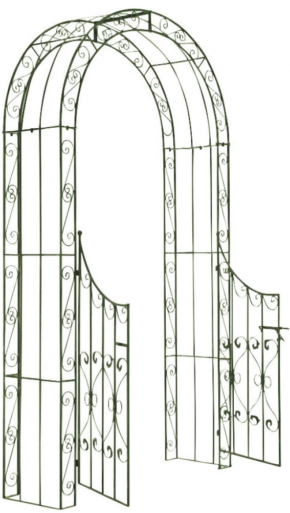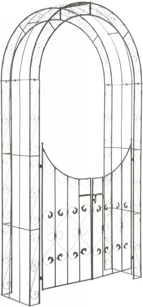 Oblouk růží s brankou Sina Tento exkluzivní oblouk růží je ideální pro kreativní doplnění vaší zahrady. Upoutá pozornost v každé zahradě, ať už volně stojící, nebo zarostlý dvěma uzamykatelnými a krásně zdobenými křídly brány. Model "SINA" je ručně vyroben z velmi robustního trubkového železa. Je sestaven pouze z několika dílů, což zaručuje snadnou montáž a okamžité použití. Díky povrchové úpravě je tato lezecká pomůcka velmi kvalitní a mimořádně odolná. Krásné ozdoby nejen krásně vypadají, ale také nabízejí vašim popínavým rostlinám dostatek příležitostí ke šplhání. To zajišťuje hustý růst. Hustý růst však znamená také vysoké hmotnostní zatížení růžového oblouku. Máte možnost růžový oblouk ukotvit do země například pomocí zemních háků. Upozorňujeme, že součástí dodávky nejsou žádné zemní háky k upevnění. Ty lze samostatně. Oblouk růží doporučujeme přišroubovat k pevnému podkladu. Pro obě možnosti jsou na spodní straně kovu předvrtané otvory.Přibližné rozměry: Výška průchodu: 235 cm Šířka průchodu: 108,5 cm Šířka ornamentu: 11 cm Tloušťka tyče: 1,5 cm Náš elegantní oblouk na růže se může pochlubit brankou a ladnými zaoblenými tvary. Vyroben ze stabilního kovu.Rozměry a vlastnosti:Celkové rozměry: Výška: 245 cm x Šířka: 135 cm x Hloubka: 41,5 cmRozměr průchodu: Výška: 233 cm x Šířka: 108 cm Hmotnost: 20 kg