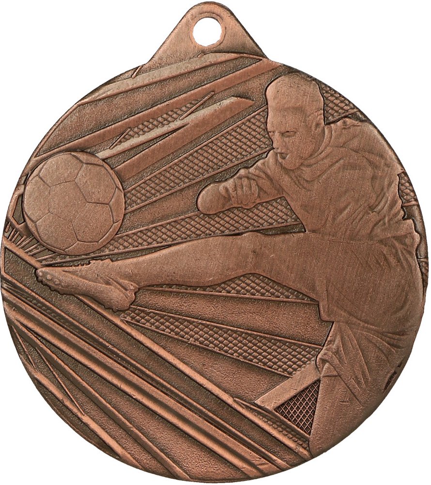 Kovová medaile s působivým designem nadchne nejen všechny fanoušky, ale i vítězné týmy fotbalového utkání. Povrch kovové medaile zdobí motiv fotbalového míče a kopaček, čímž dokonale připomene atmosféru zápasu a díky svému provedení bude malým klenotem všech vášnivých fotbalistů.