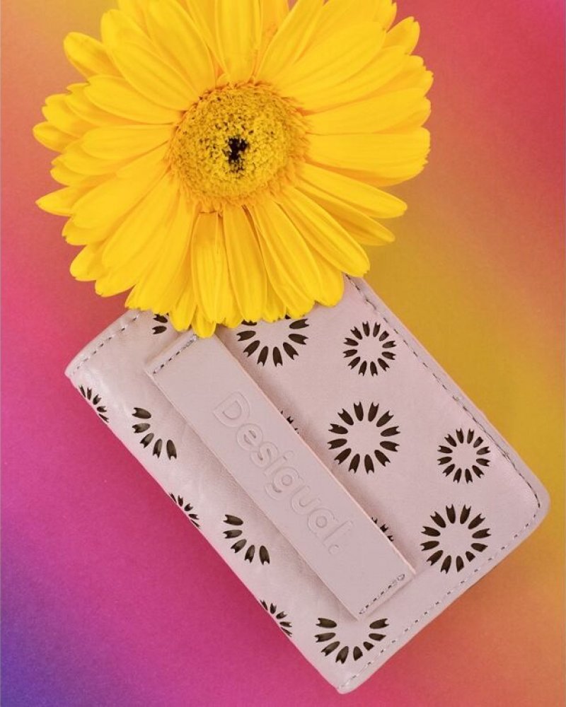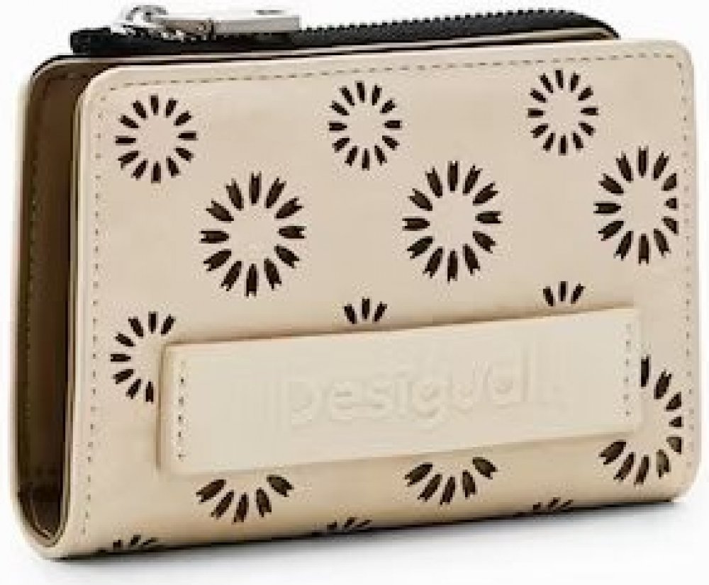 Stylová dámská peněženka Amorina Emma od značky Desigual. Vejde se Vám i do kapsy u bundy. dámská béžová peněženka koženková hnědé průsvity v motivu květin pásek s logem značky na předním díle zapínání na cvoček vnitřní hnědá část 6 menších přihrádek na karty 2 větší přihrádek kapsa na zip na drobné Rozměry: 12 (š) x 8 (v) x 1,5 (h) cm