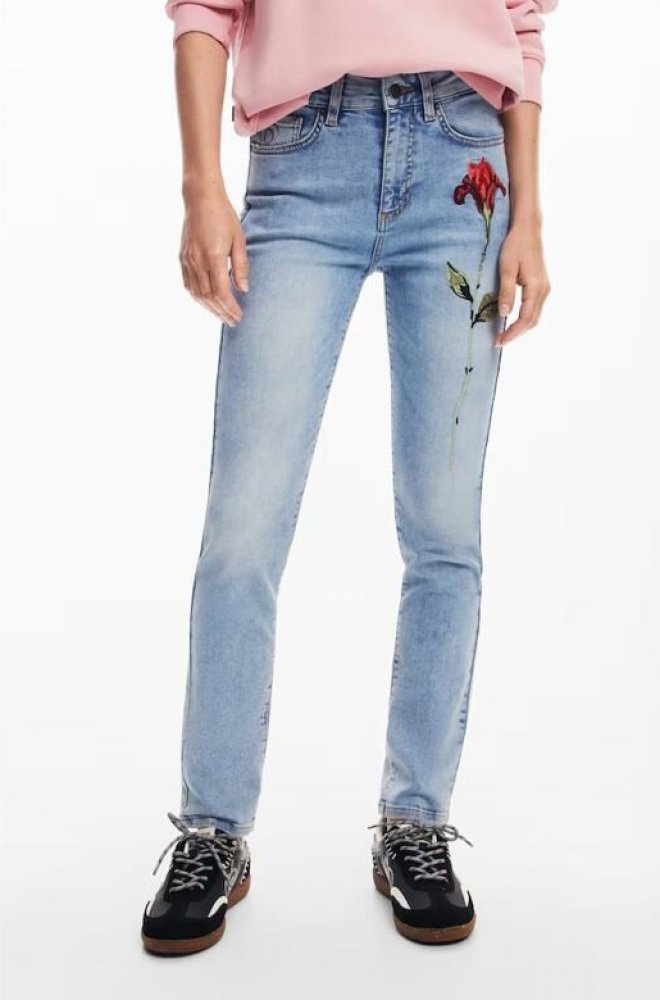 Moderní dámské jeans Aina od značky Desigual. Kombinují jak estetickou přitažlivost, tak funkční pohodlí. Květinová výšivka motivy přitahuje pozornost, ale také přidává kalhotám dotek ženskosti a romantiky. Široké nohavice poskytují více prostoru pro nohy, což zvyšuje pohodlí při nošení a umožňuje větší volnost pohybu. . Kombinace bavlny s elastickými vlákny zaručuje, že kalhoty se přizpůsobí tvar...