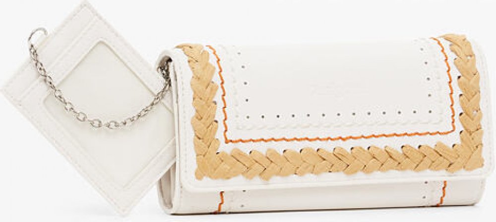 Luxusní dámská peněženka Trama Mariona od značky Desigual. Peněženka v klasickém dlouhém provedení, do které vložíte vše důležité. Peněženka Vám bude milou společnicí každý den. Oceníte odnímatelné pozdýrko na karty. dámská bílá peněženka kovové logo Desigual barevné prošívání a 3D pletení koženka zapínání klopou na cvočky 10 přihrádek na karty zipová kapsa na mince 6 podlouhlých kapes recyklovaný...