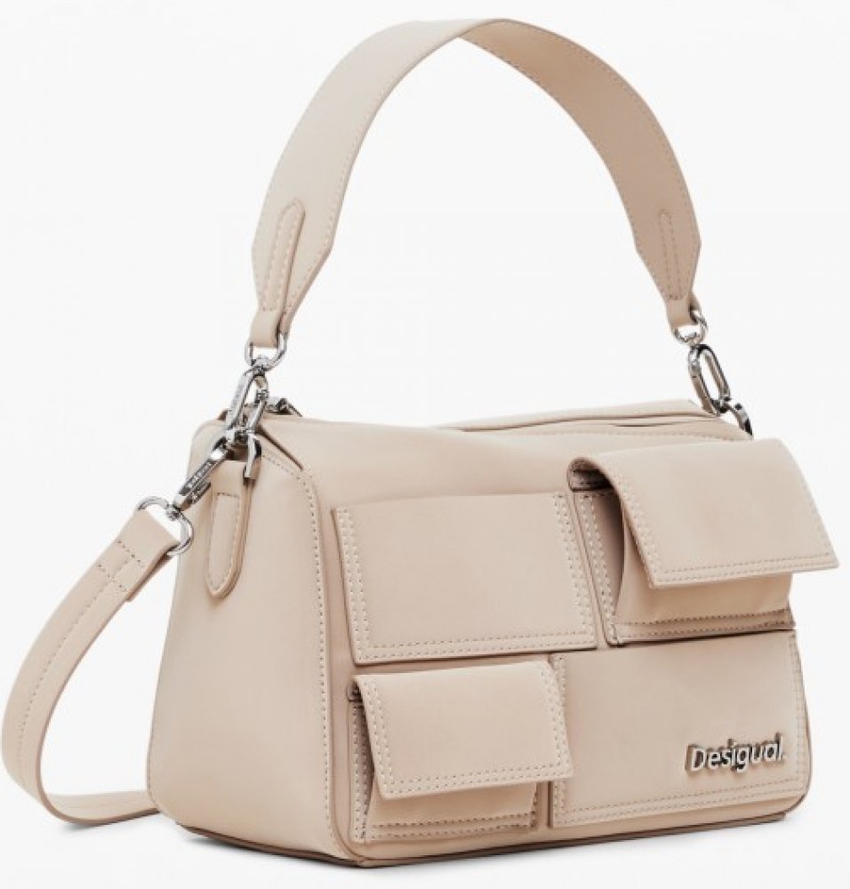 Elegantní kabelka od značky Desigual. Tato praktická kabelka vyniká svým neotřelým designem. Kabelka nabízí množství kapes, které poskytují dostatek prostoru pro všechny Vaše věci. Dvě poutka umožňují pohodlné nošení a zvyšují její praktičnost.