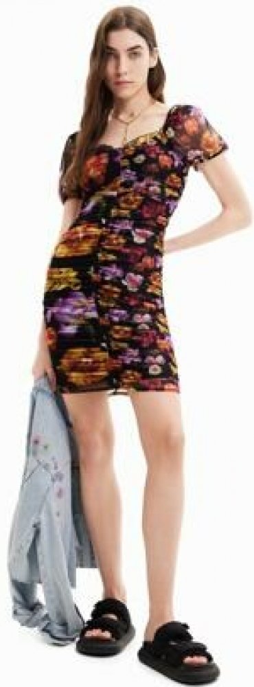 Krátké vypasované šaty s krátkými nabíranými rukávy a nařaseným vrchem. S fotografickým květinovým potiskem. Navrhl M. Christian Lacroix.Svrchní materiál93% polyester 7% elastanVnitřní materiál95% viskóza 5% elastan