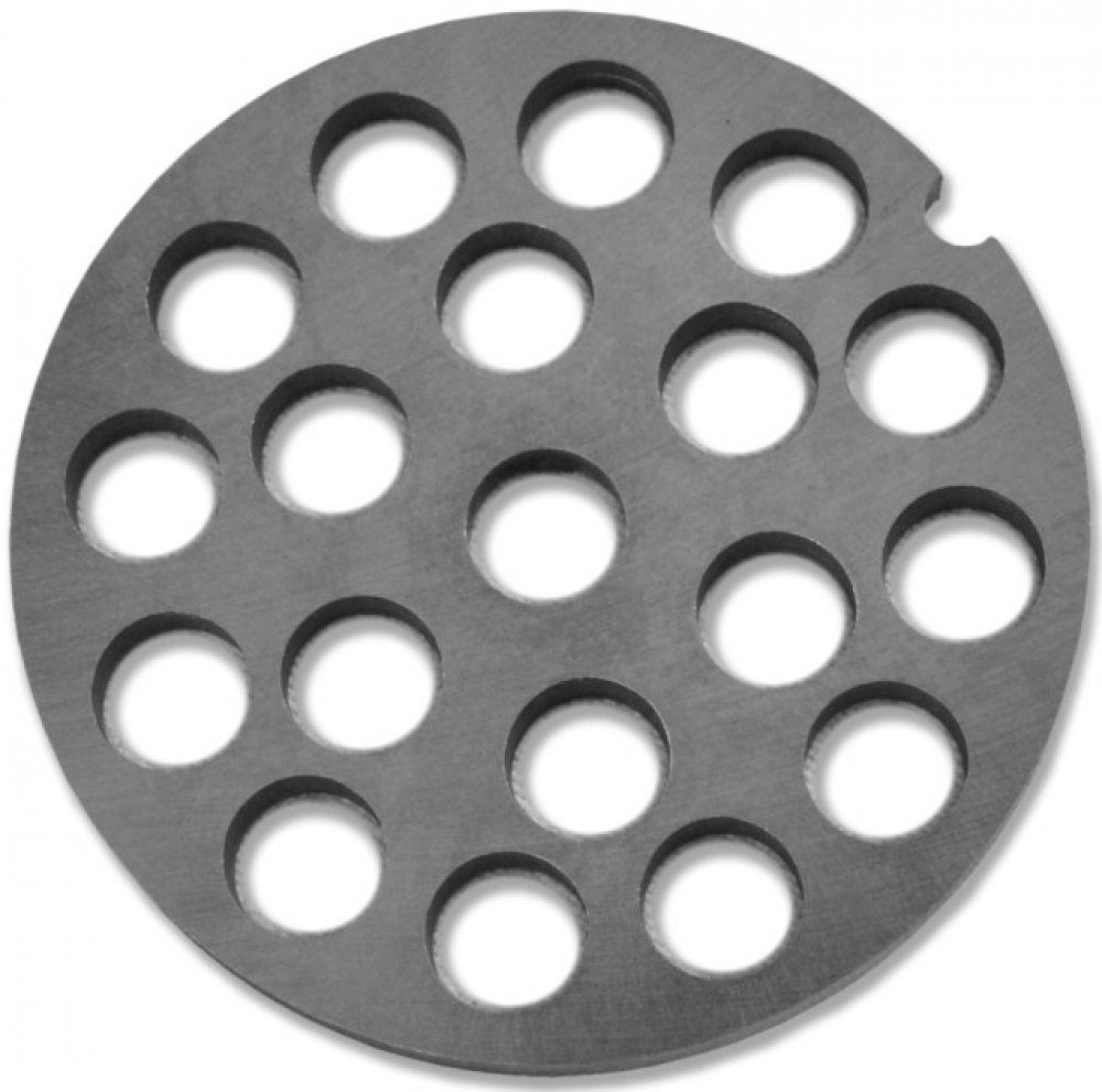 Řezná deska, šajba slouží jako deska do masostrojku na mletí masa, ale i jiných surovin. Velikost otvorů určuje výslednou zrnitost namleté suroviny.