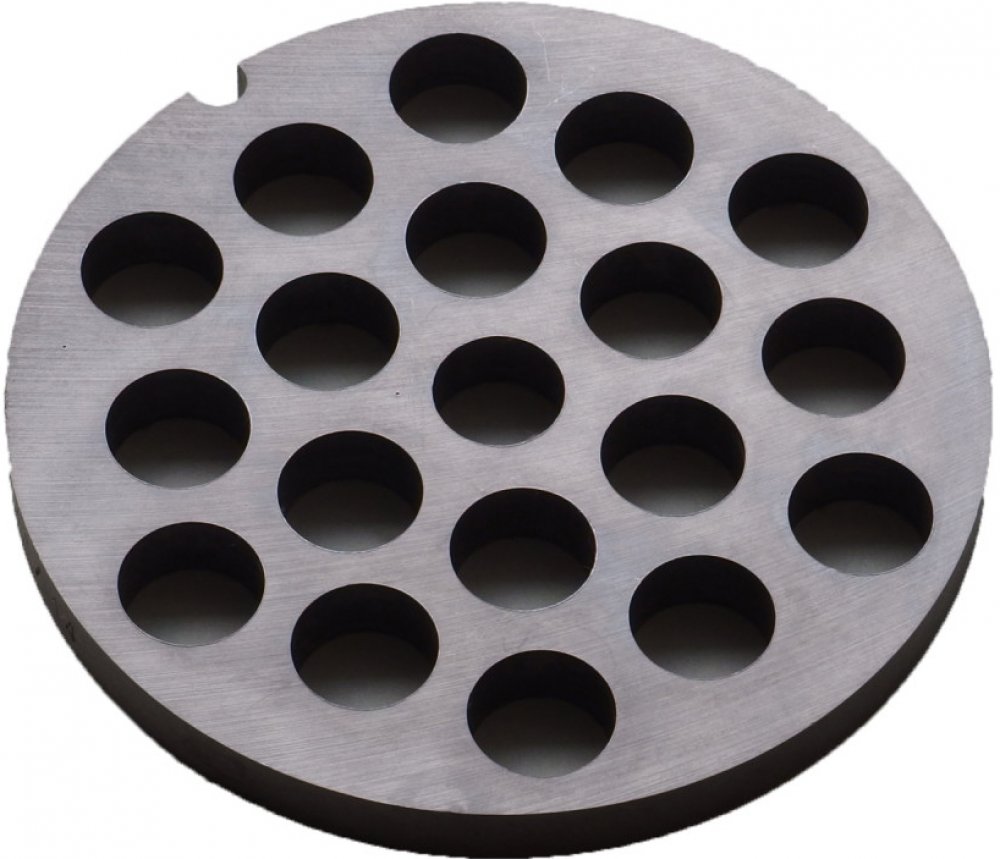 Řezná deska, šajba slouží jako deska do masostrojku na mletí masa, ale i jiných surovin. Velikost otvorů určuje výslednou zrnitost namleté suroviny.