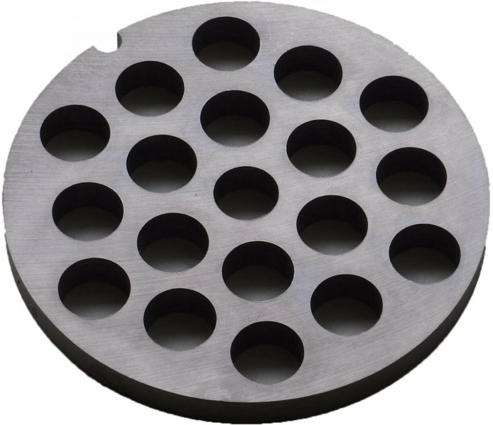 Řezná deska, šajba slouží jako deska do masostrojku na mletí masa, ale i jiných surovin. Velikost otvorů určuje výslednou zrnitost namleté suroviny. Pro zachování co nejdelší životnosti doporučuje výrobce po použití omýt desku teplou vodou, důkladně osušit a skladovat v suchém a neagresivním prostředí. Klíčové vlastnosti desky do mlýnku na maso KDS 32/14, šajbaŘezná deska je vyrobená v české nožíř...