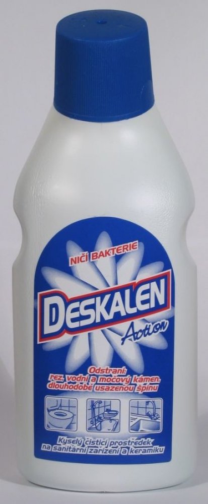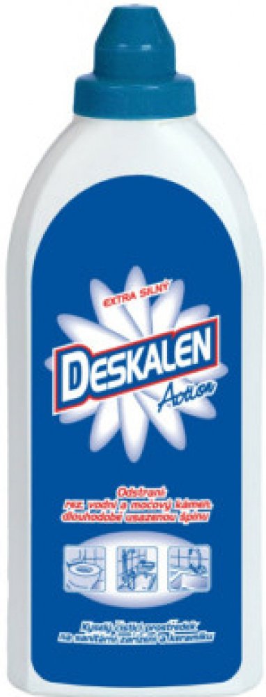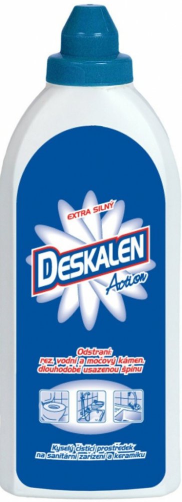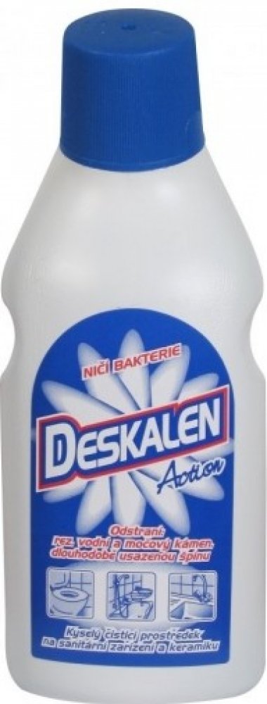 Deskalen je extra silný čistící přípravek na sanitární zařízení, keramické a smaltované povrchy. Odstraňuje vodní a močový kámen, rezavé skvrny a dlouhodobě usazené nečistoty.Bezpečnostní upozornění produktu (H-věty)H318: Způsobuje vážné poškození očí.Pokyny pro bezpečné zacházení (P-věty)P102: Uchovávejte mimo dosah dětí.P264: Po manipulaci důkladně omyjte všechny zasažené části těla, například r...