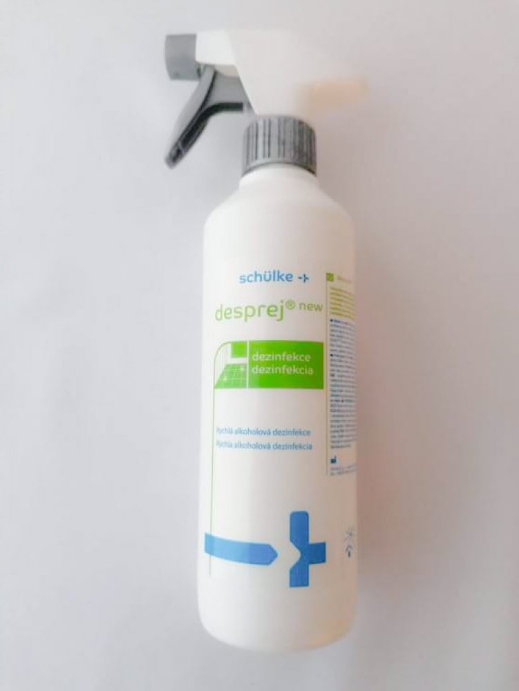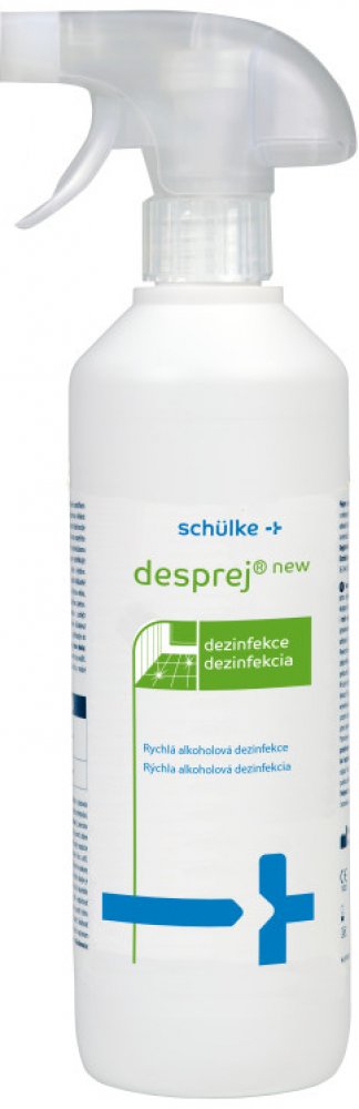Návod na použití:desprej® new se neředí a aplikuje se koncentrovaný pomocí postřiku, případně otěru. Dbejte na rovnoměrné nanesení přípravku (rozetřít utěrkou) a nechejte jej působit po dobu expozice, přebytečné množství tekutiny otřete po uplynutí doby expozice jednorázovou utěrkou. Nevhodný na materiály citlivé na alkohol (plexisklo, akryláty, lesklé plasty).