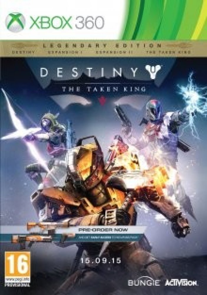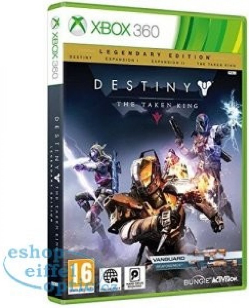 Hra pro Xbox 360 Destiny: The Taken King (Legendary Edition). S Destiny: The Taken King - Legendary Edition můžete začít nové, nebo pokračovat ve stávajícím dobrodružství. Legendary Edition obsahuje kompletní vydání Destiny - nejen nejnovější dobrodružství The Taken King, ale též původní hru s oběma rozšířeními (The Dark Below a House of Wolves). Přidejte se k 20 milionům Strážců a bojujte s nepřá...