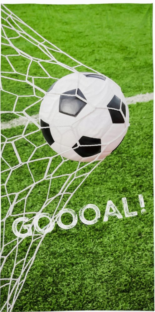 Dětská bavlněná froté osuška s motivem Fotbal gól. Barevná froté osuška Fotbal má kvalitní potisk. Kvalitní osušku s fotbalovým míčem o rozměrech 70x140 cm děti využijí v koupelně, u bazénu či u moře. Dětská osuška Fotbal je ze 100% bavlny - froté. Praní je možné i na 40°C.