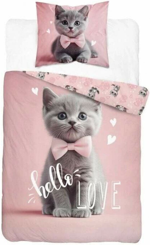 Detexpol povlečení Kotě Hello Love je roztomilé bavlněné povlečení určené pro velkou postel o rozměrech 140 x 200 cm s přikrývkou a 70 x 80 cm s polštářem. Povlečení Kotě hello love je vyrobeno ze 100% kvalitní bavlny, která je příjemná na dotek a zajišťuje pohodlný spánek. Povlečení Kotě hello love má praktické zapínání na zip, což usnadňuje jeho obsluhu a udržování. Na každé straně povlečení je jiný motiv, což dodává povlečení hravý a roztomilý vzhled (viz foto). Doporučené praní je na 40°C, což zajišťuje zachování barev a kvality materiálu. Tento set je ideální volbou pro milovníky roztomilých a pohodlných ložních doplňků.