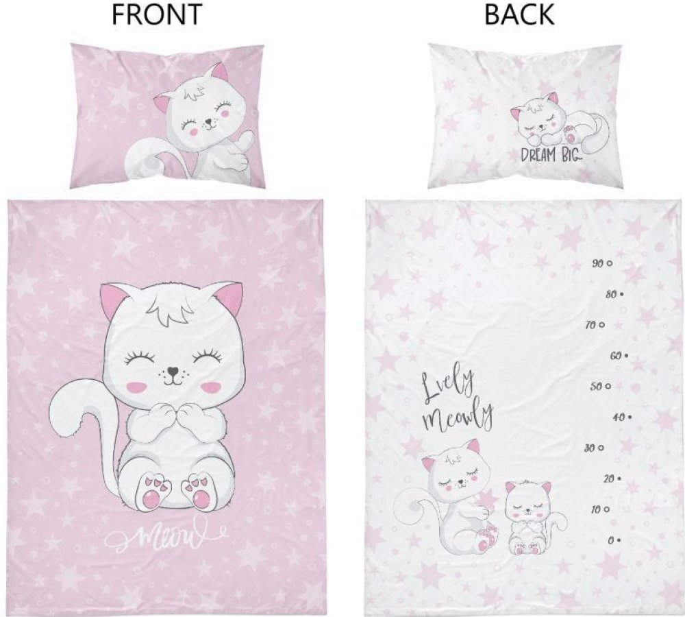 Oboustranné moderní povlečení pro děti z měkké bambusové látky, která je příjemná na dotek a nedráždí pokožku. Bambus, ze kterého je vyroben, má přirozené termoregulační vlastnosti, v zimě zahřeje a v létě příjemně ochladí. Povlečení může být krásným doplňkem do dětského pokojíčku a zároveň podporuje příjemný spánek těch nejmenších. Barevný design s motivem koťátka se bude líbit každému dítku. Sad...