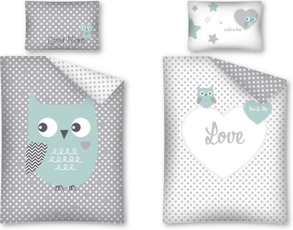 DETEXPOL Povlečení do postýlky Sova tyrkysová