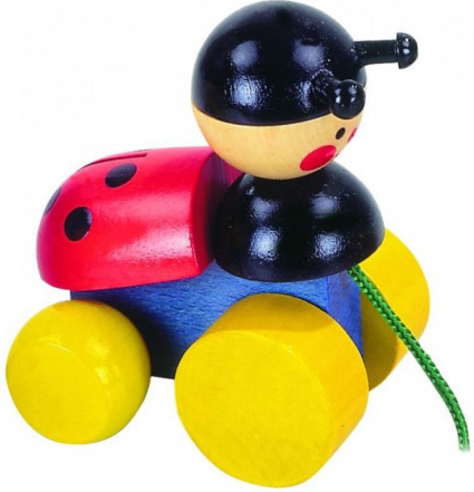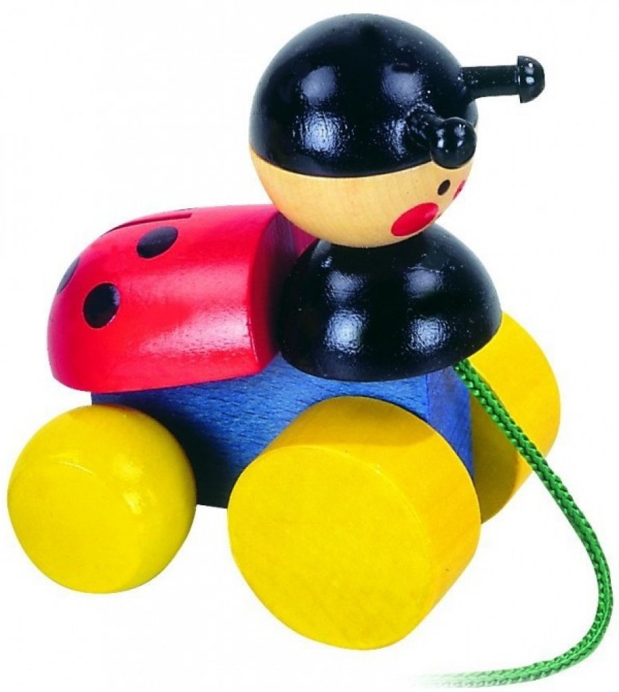 Tahací beruška. Nevhodné pro děti do 3 let. Obsahuje malé části. Výrobek je zdravotně nezávadný.Dřevěná hračka splňuje všechny normy EU.