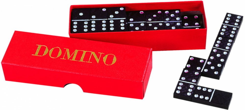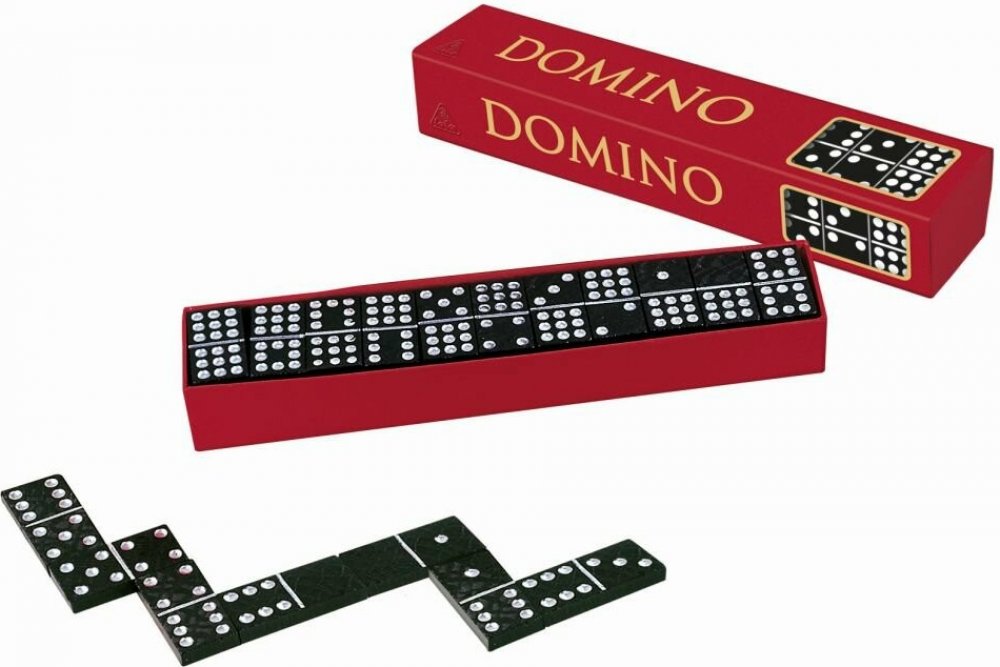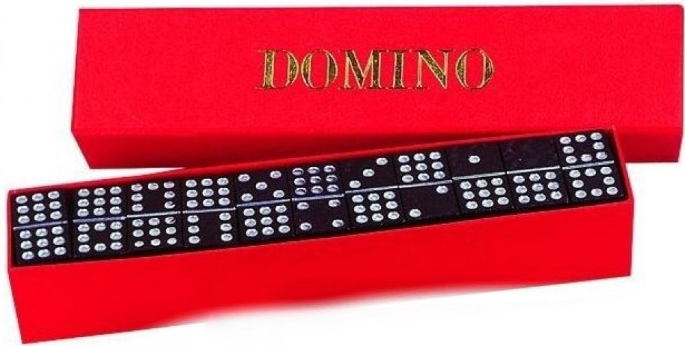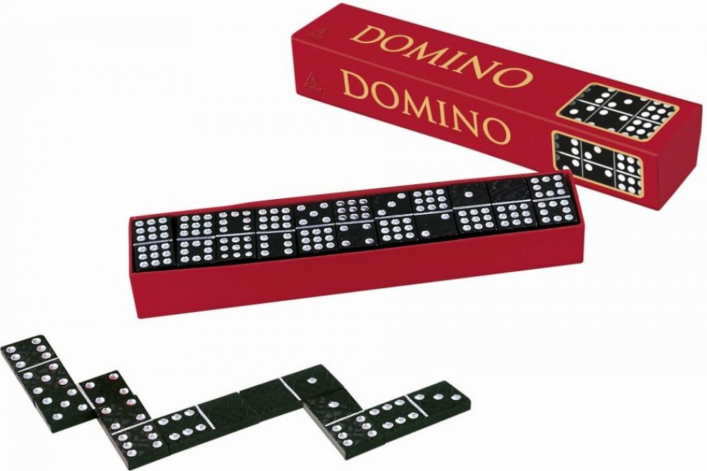 Klasické domino, které obsahuje 55 kamenů o velikosti 20 x 40 mm.