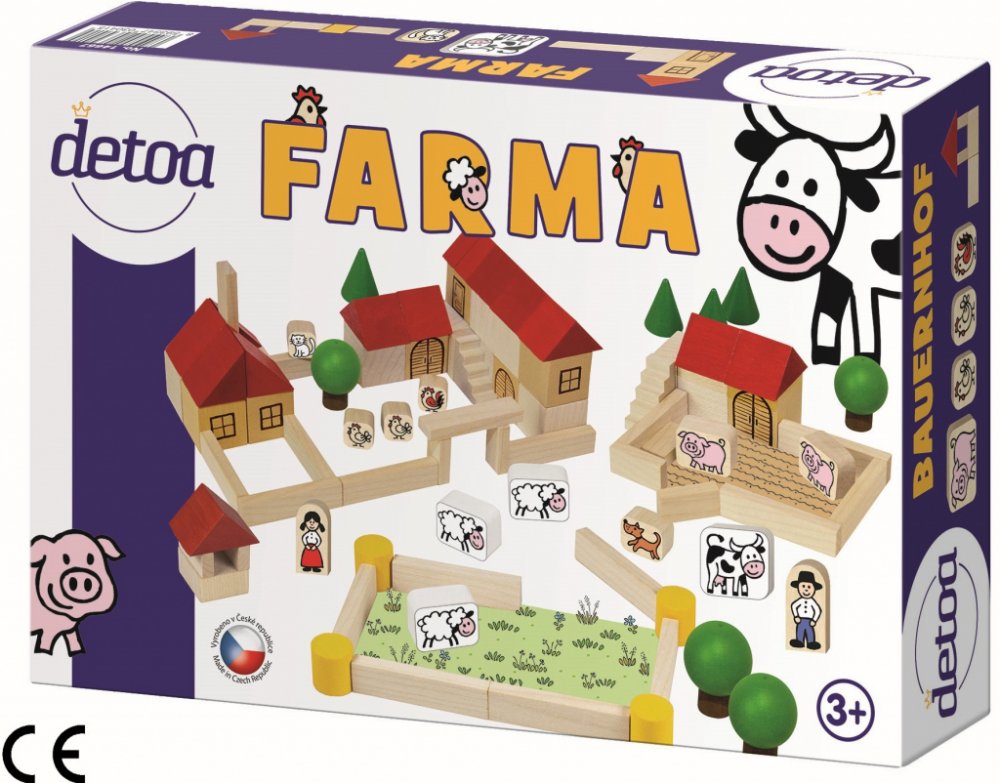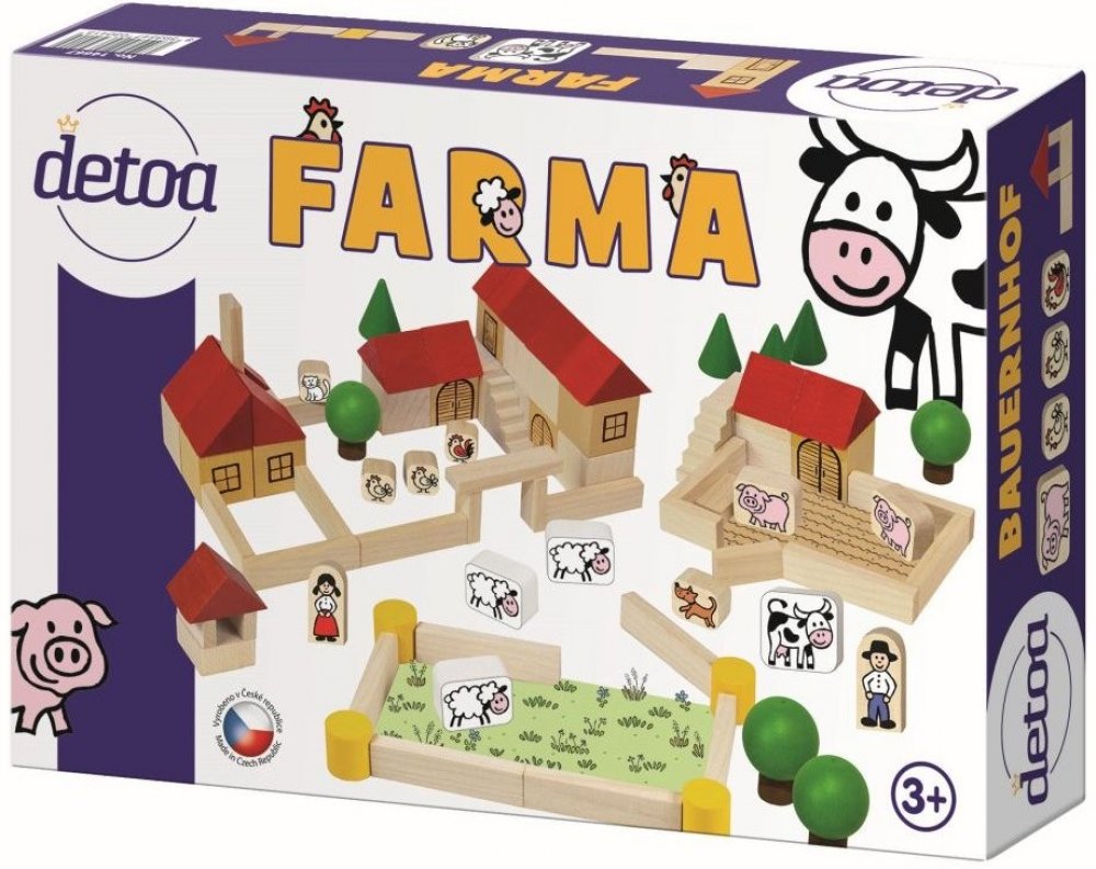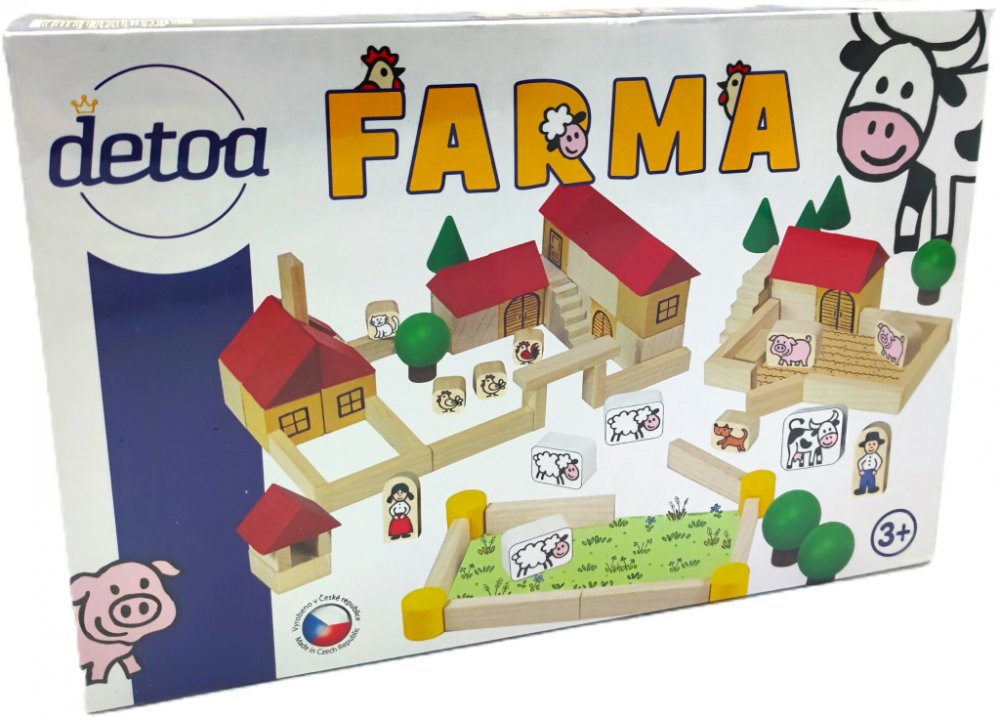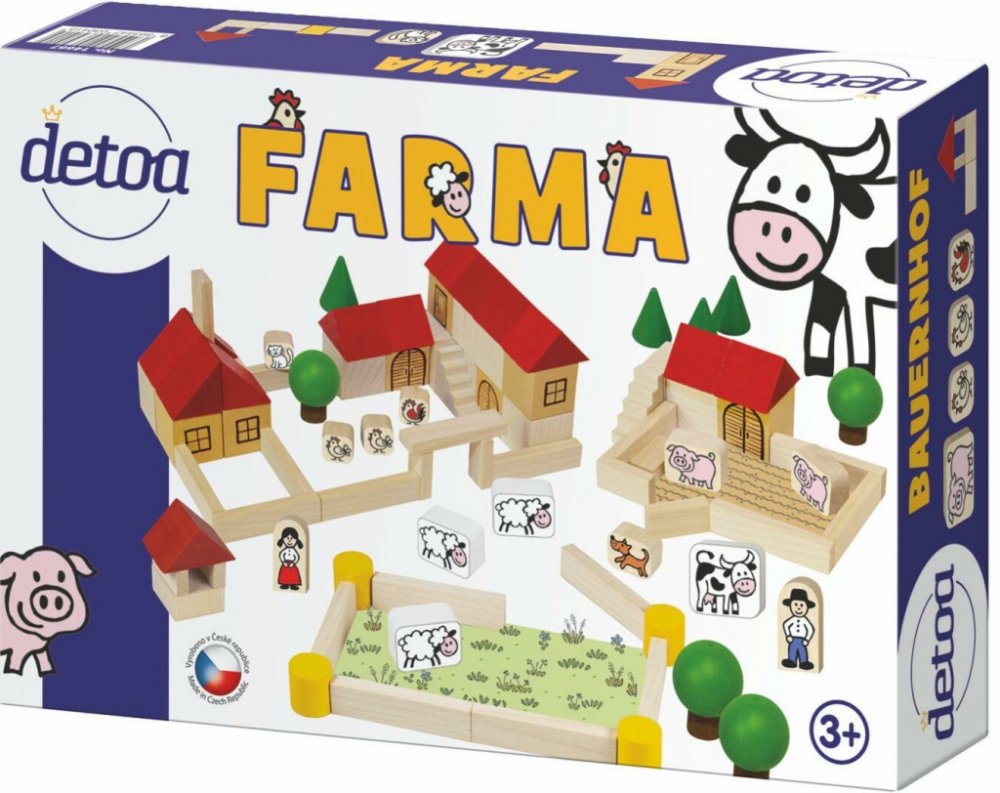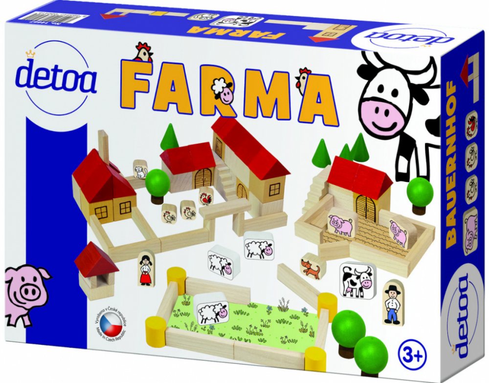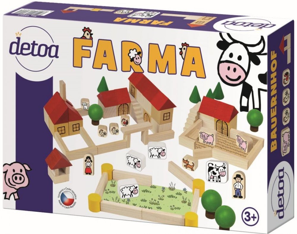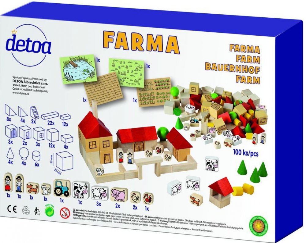 DETOA Farma - Stavebnice obsahující 100ks dřevěných dílků s potiskem v různých tvarech a velikostech.