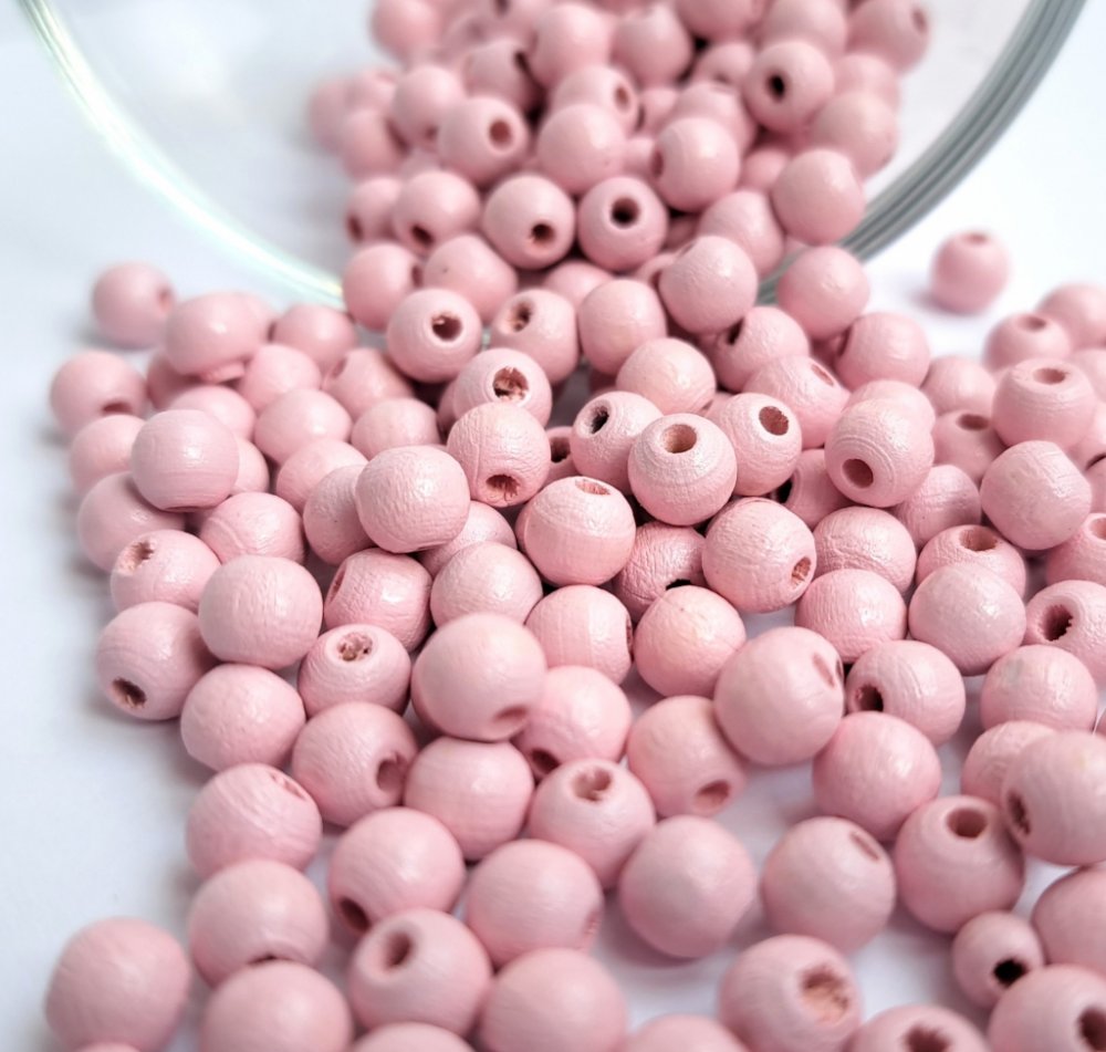 Dřevěné korálky – světle růžové, 6 mm (10 ks)