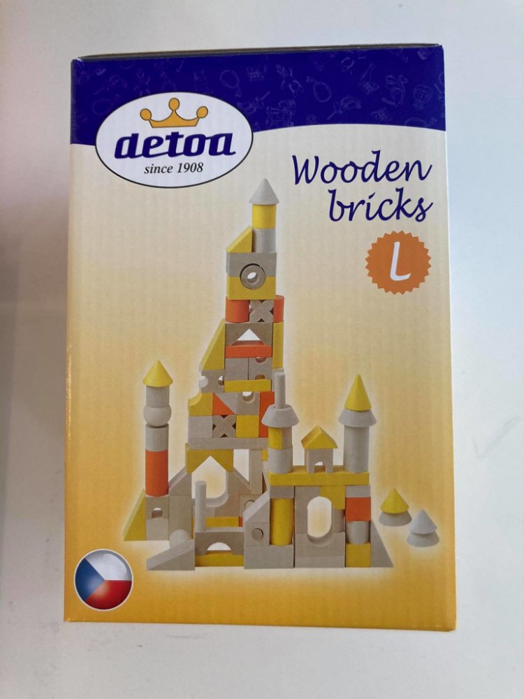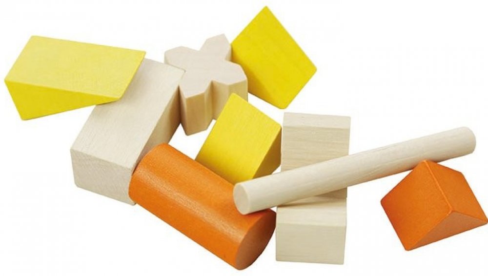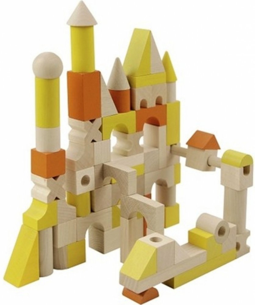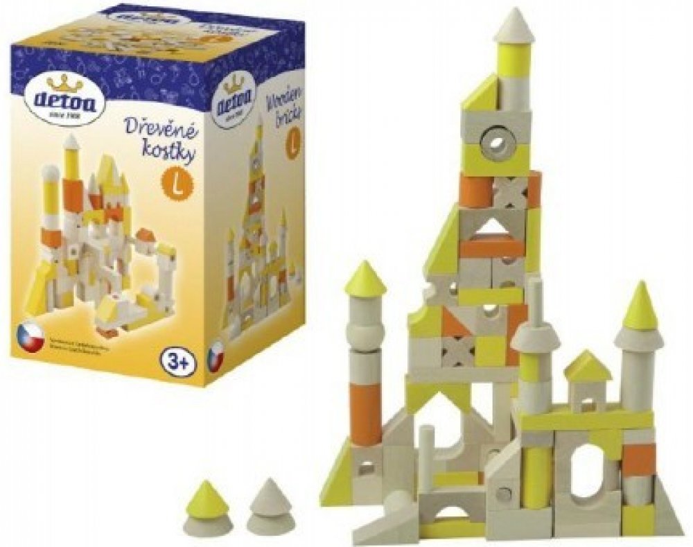 Inovovaná stavebnice skládající se z různých tvarů a velikostí dřevěných dílků v barevném provedení žluto-oranžovém. Kromě klasických krychlí, kvádrů a válečků obsahuje také tyčky, jehlany, "X"ka a další tvary. Některé jsou navíc provrtané. Díky tomu můžete postavit úžasné stavby.