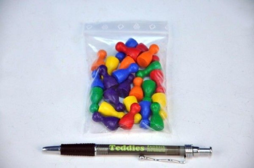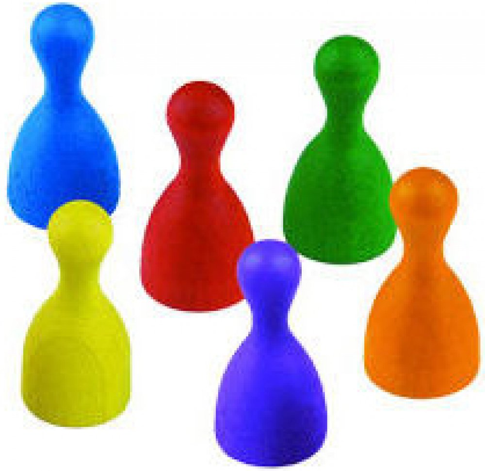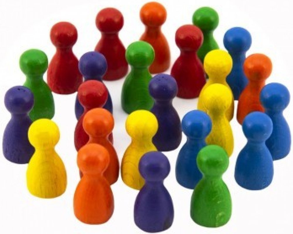 Náhradní herní dřevěné figurky vhodné k nejrůznějším společenským hrám, jako je třeba Člověče nezlob se apod. 24 kusů barevných figurek v šesti barvách
